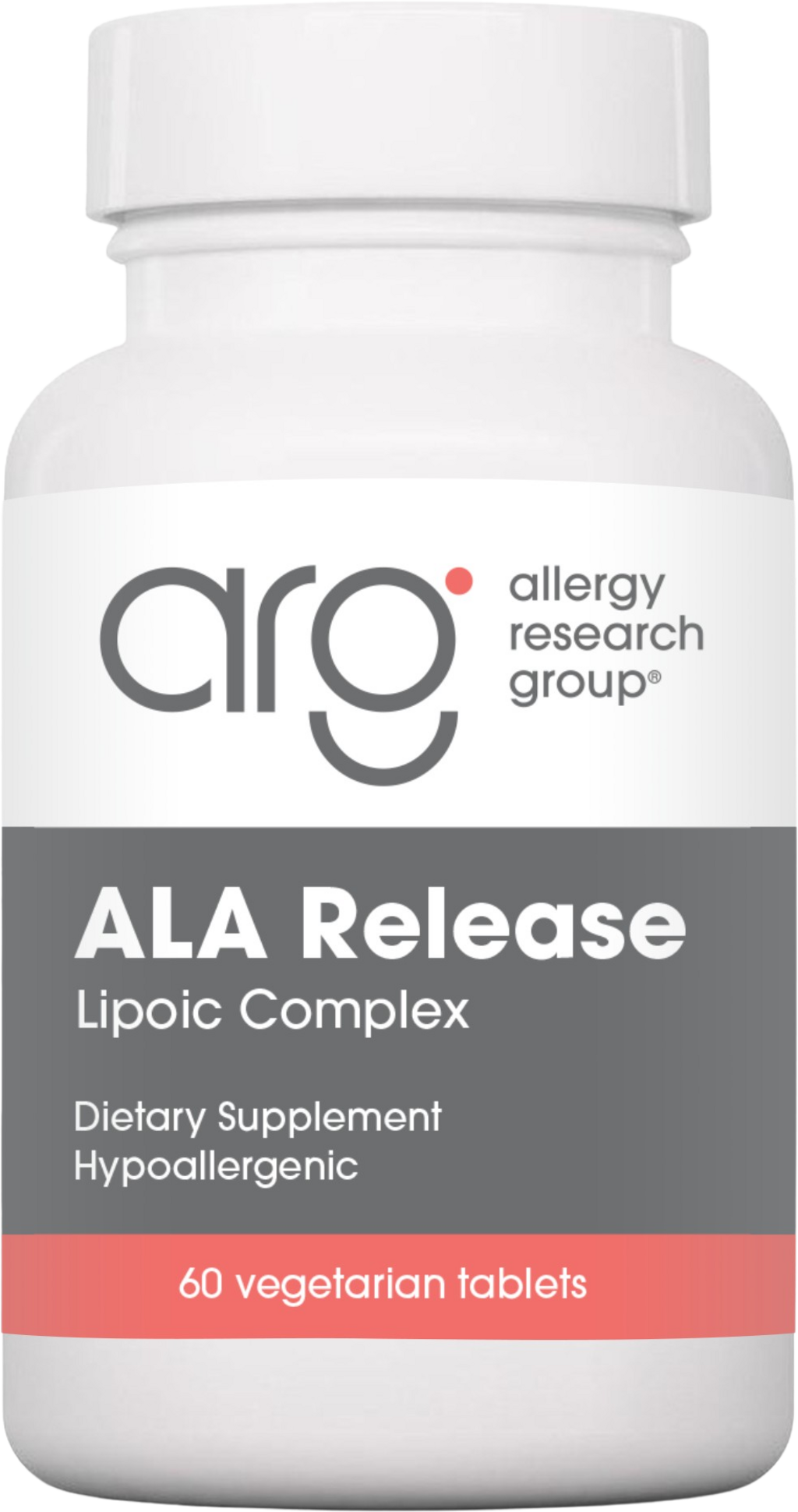 ALA Release značky Allergy Research Group obsahuje kyselinu alfa-lipoovou, kyselinu R-alfa-lipoovou, biotin a vápník.