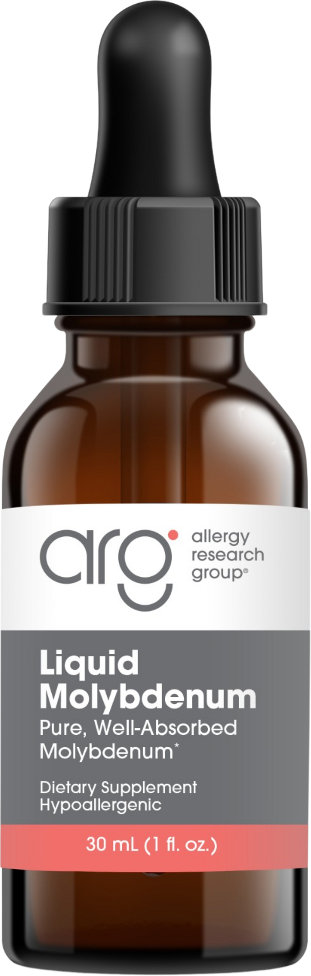 Liquid Molybdenum značky Allergy Research Group je tekutý molybden ve zředěném roztoku molybdenanu amonného. Molybden se podílí na metabolismu síry.
