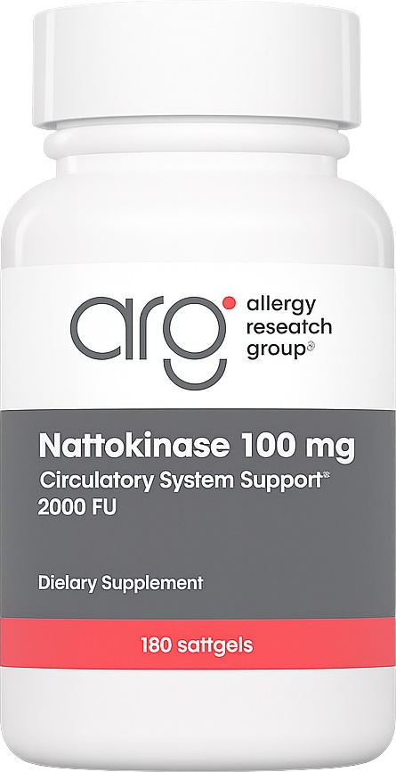 Nattokináza (NK) je profilbrinolytická serinová proteáza původně získaná z Natto, tradiční japonské potraviny. Natto se skládá z fermentovaných vařených sójových bobů inkubovaných s Bacillus subtilis natto. NSK-SD® je patentovaná formule nattokinázy od Japan BioScience Labs. Tato společnost si v roce 1998 nechala patentovat první nattokinázu s aktivitou nejméně 20 000 FU na gram, ve formě bez vitamínu K a bez zápachu. FU = jednotky fibrinolytické degradace, aktivita fibrinolytických enzymů. Nattokinase NSK-SD® 100 mg značky Allergy Research Group je jedinou formu bez vitamínu K2.