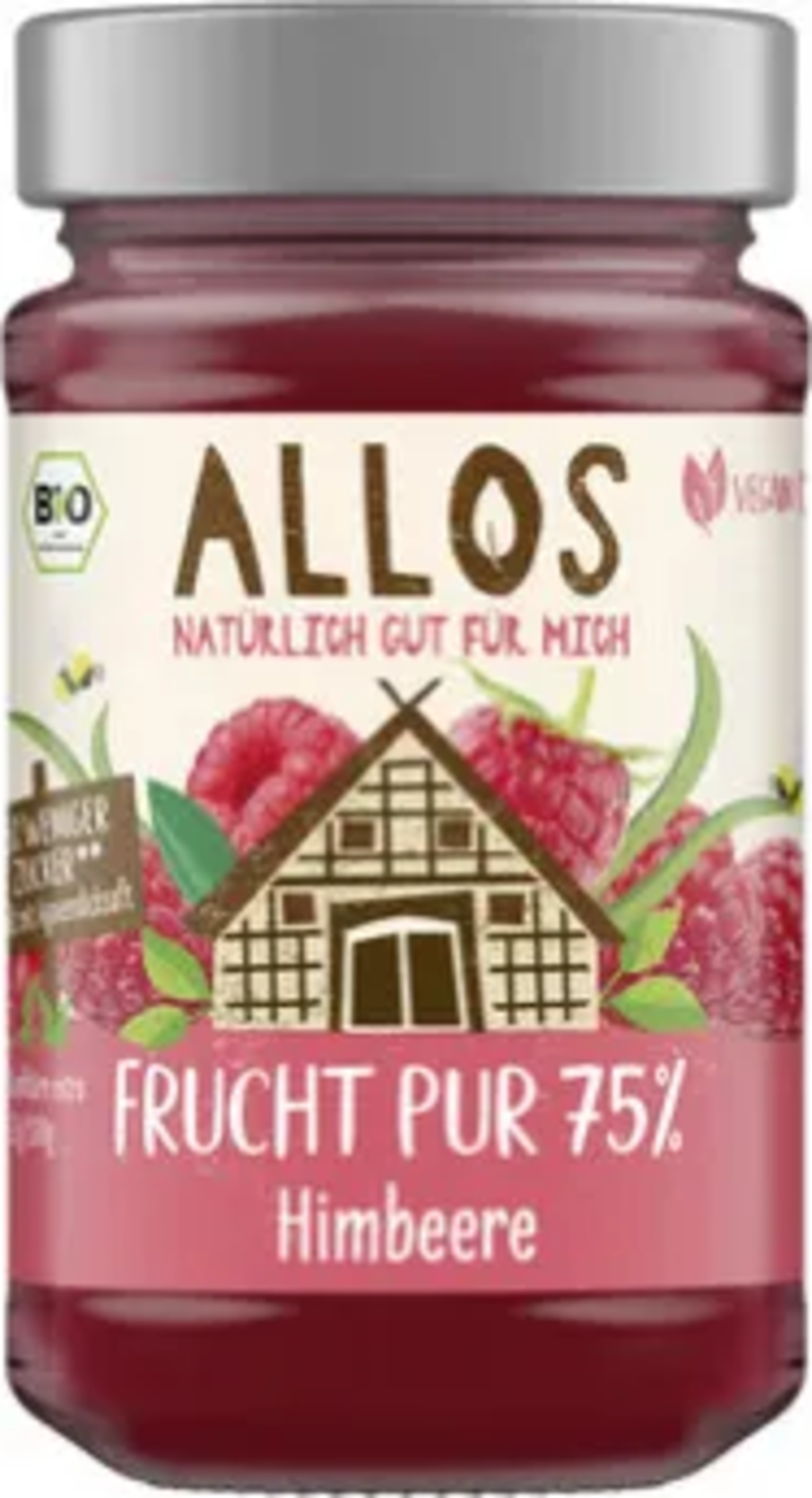 Čistá ovocná příchuť pro Váš snídaňový chléb: ALLOS Vám nabízí Bio 75% čisté ovoce - maliny. U této varianty jsou šťavnaté sladké maliny šetrně zpracovány a doplněny sladkostí agávového sirupu. Přípravek je veganský a obsahuje o 58 % méně cukru.