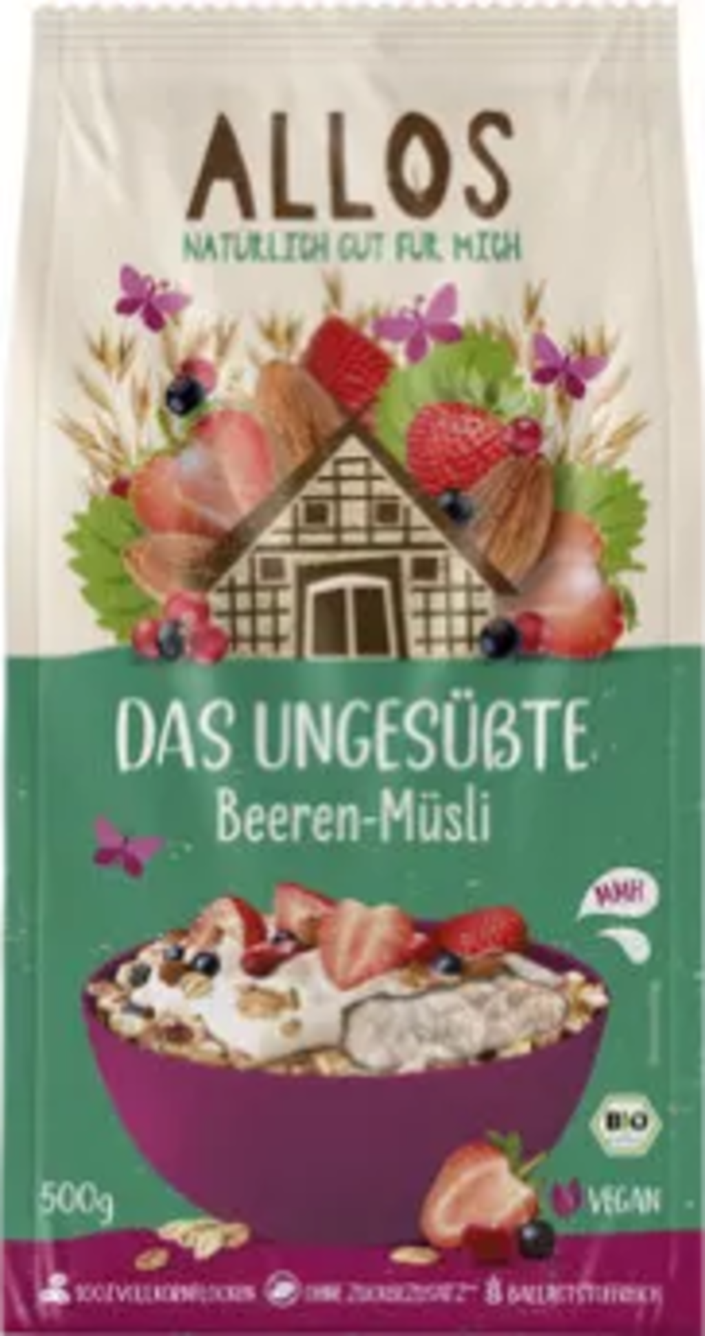 Müsli, které je plněné lahodnými ingrediencemi, jako jsou celozrnné ovesné vločky, jahody, brusinky a černý rybíz, Vám nahradí sladkosti. Bio neslazené müsli s bobulemi od společnosti ALLOS je vyrobeno ze 100% celozrnných vloček a má vysoký obsah vlákniny. Pro dobrý a nekomplikovaný start do nového dne.