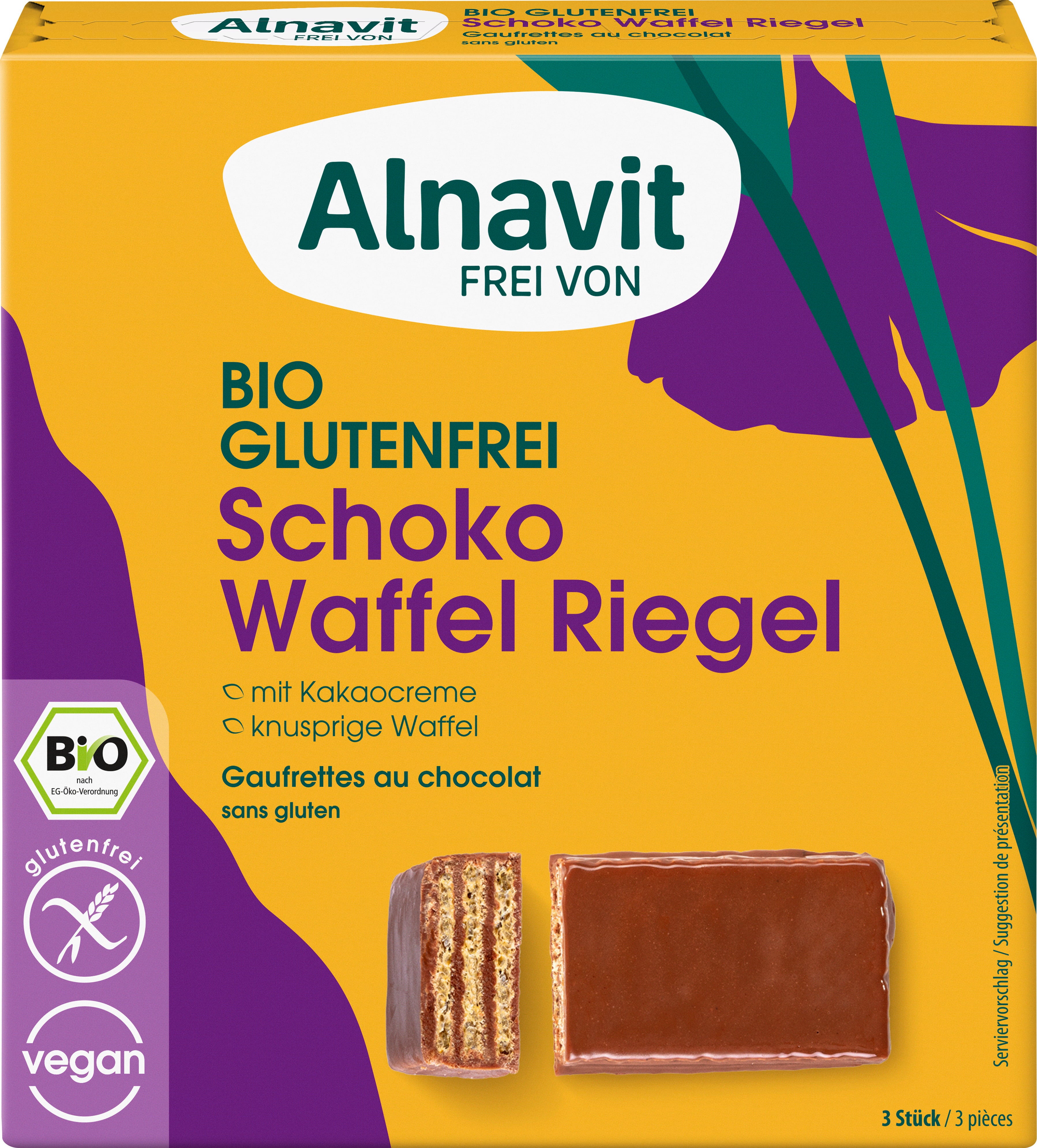 Čokoládové oplatkové tyčinky od Alnavit spojují krémovou kakaovou náplň s křupavými oplatkovými plátky, obalenými v jemné čokoládové polevě. Bez lepku, veganské a ideálně porcované – pro malý čokoládový moment kdykoliv během dne.