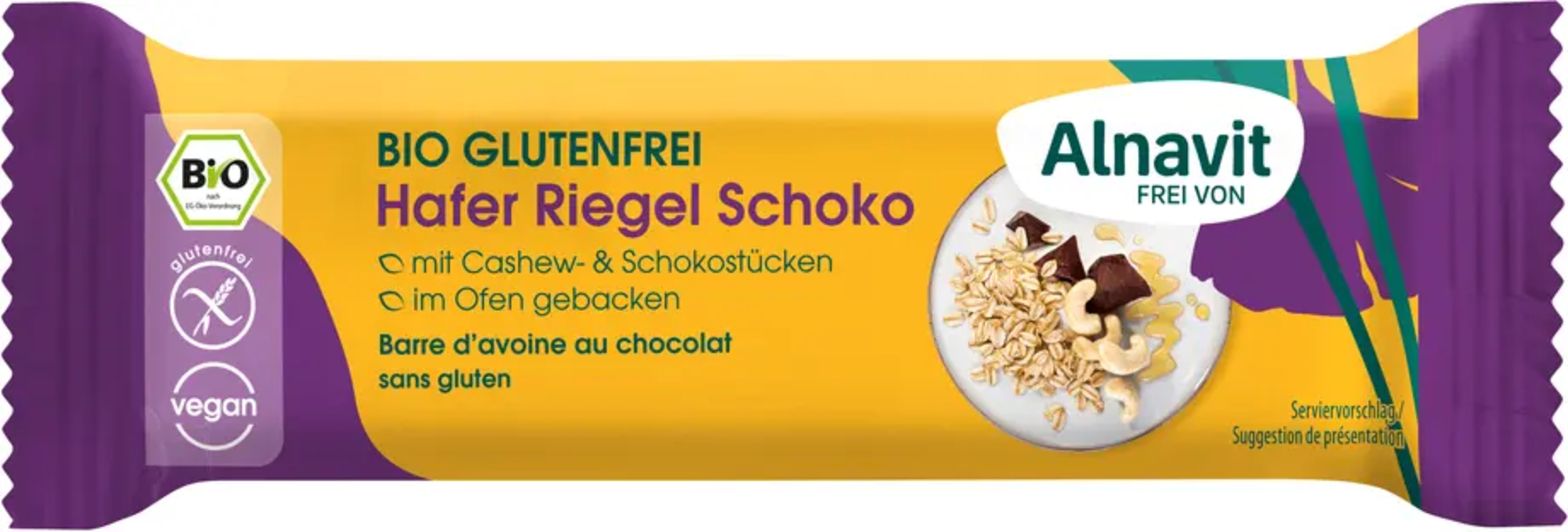 Čokoládová ovesná tyčinka Alnavit kombinuje bezlepkové bio celozrnné ovesné vločky s jemnými kešu oříšky a kousky čokolády, které se rozplývají v ústech. Tato veganská tyčinka, jemně upečená v troubě, zaujme svou vláčnou texturou a intenzivní čokoládovou chutí. Ideální pro rychlou svačinu nebo jako zdroj energie před tréninkem.