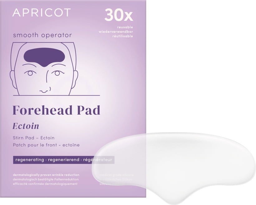 Ectoin náplast na čelo od APRICOT poskytuje intenzivní a dlouhotrvající péči o pokožku v oblasti čela s přírodním ektoinem. Je vyrobena z lékařského silikonu a lze ji použít až 30krát. Náplast také chrání před modrým světlem. Jemné vrásky lze také vyhladit a redukovat.