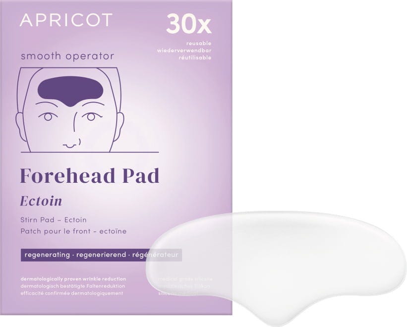 Ectoin náplast na čelo od APRICOT poskytuje intenzivní a dlouhotrvající péči o pokožku v oblasti čela s přírodním ektoinem. Je vyrobena z lékařského silikonu a lze ji použít až 30krát. Náplast také chrání před modrým světlem. Jemné vrásky lze také vyhladit a redukovat.