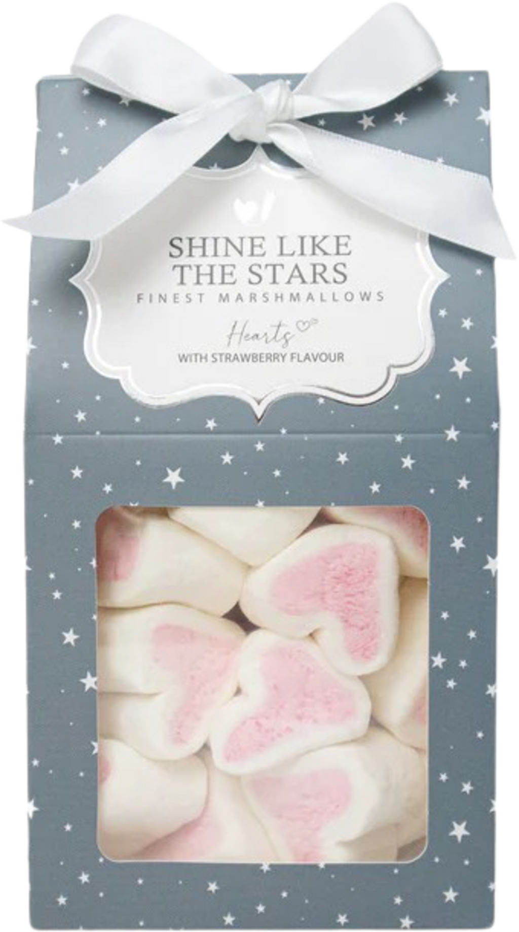 Bílá marshmallow srdíčka s jahodovou příchutí od Bake Affair jsou zárukou nadýchaného potěšení. Skvěle se hodí jako dárek, na mlsání jen tak pro sebe nebo jako ozdoba horké čokolády, dortů a dalších dobrot.