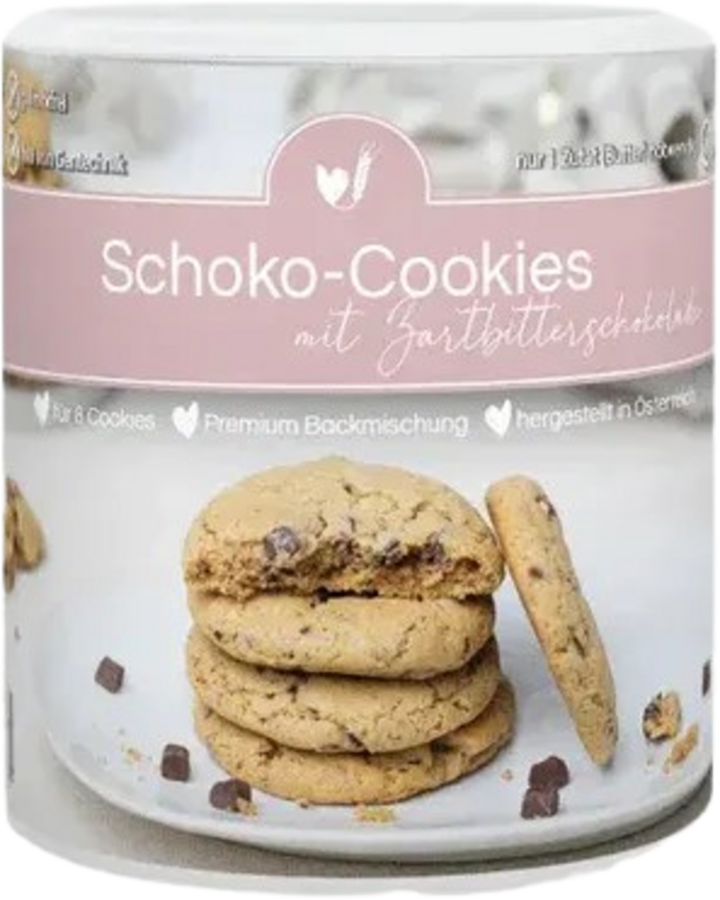 pšeničná mouka, 30,6 % hořká čokoláda (cukr, kakaová hmota, kakaové máslo), emulgátor (sójový lecitin, vanilkové aroma), hnědý cukr, prášek z celých vajec, druh prášku do pečiva (natron)