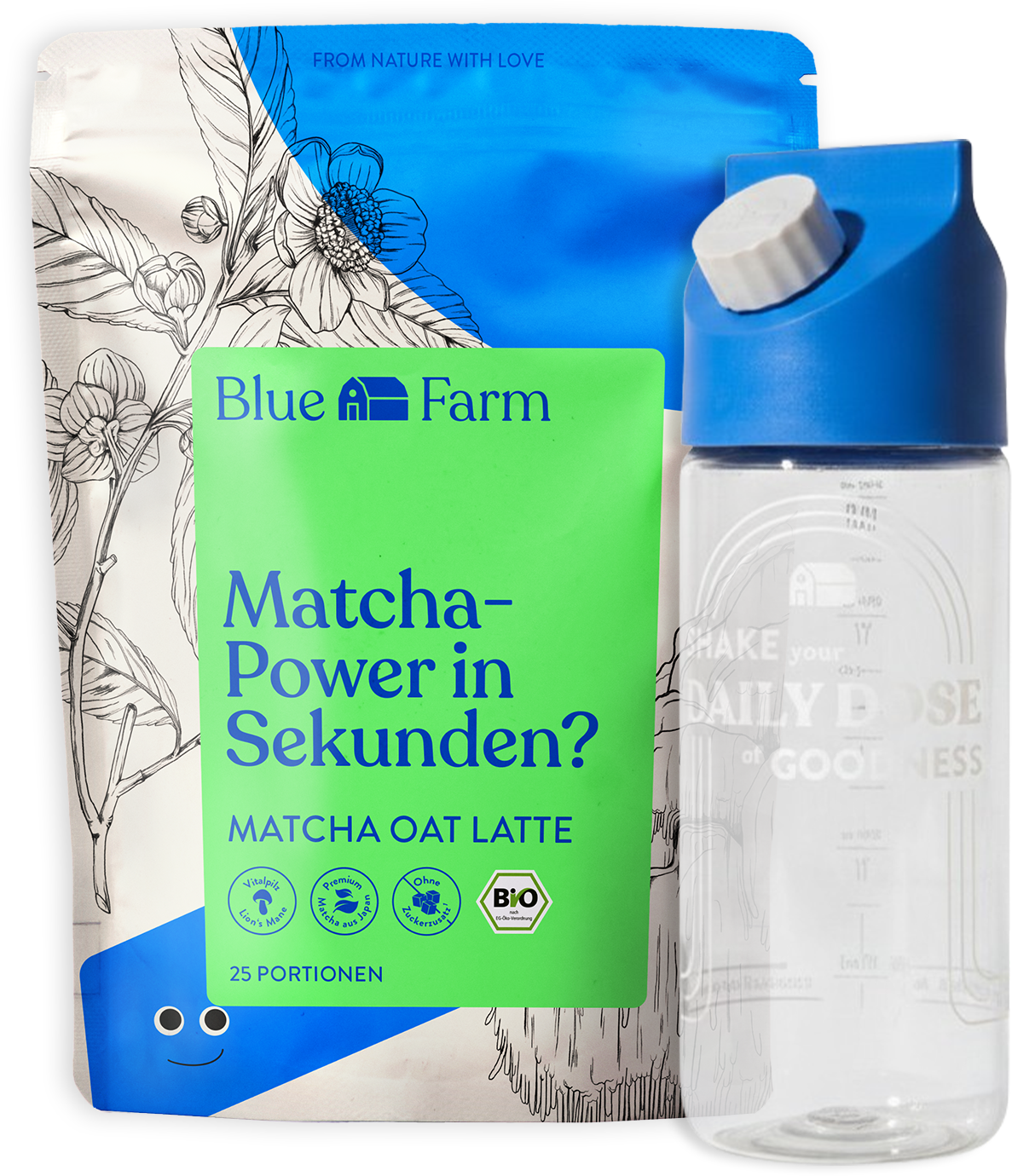 Bio Matcha Oat Latte od Blue Farm kombinuje vysoce kvalitní matcha s vitální houbou Lion's Mane a krémovým ovesným práškem pro vytvoření speciálního chuťového zážitku. Díky své jemné a lehce nahořklé notě a přirozené sladkosti ovsa je lahodnou alternativou ke konvenčnímu mléku nebo rostlinným nápojům.