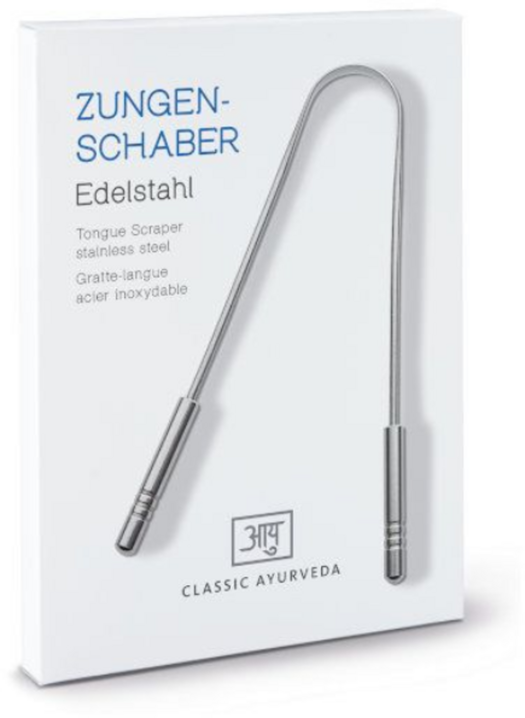 Tato škrabka na jazyk je vyrobena z nerezové oceli a navržena pro dlouhodobé používání v rámci každodenní rutiny. Díky pevným držadlům umožňuje přesnou manipulaci při čištění povrchu jazyka. Podle ajurvédského učení slouží tento nástroj k mechanickému odstranění ranních usazenin a bakterií z povrchu jazyka. Kvalitní zpracování zajišťuje tvarovou stálost škrabky a podporuje hygienickou péči o ústní dutinu.