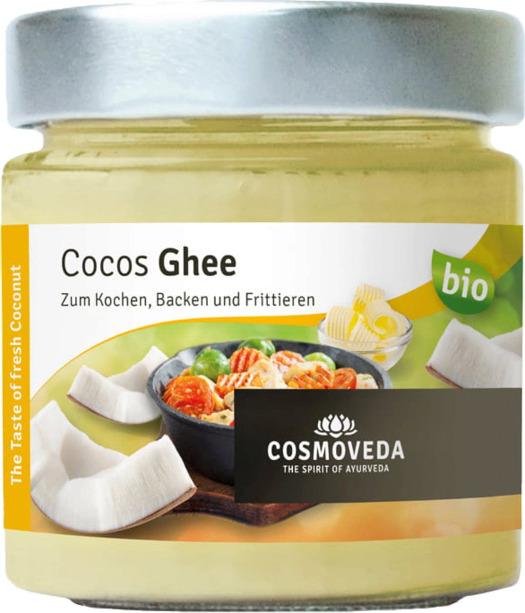Bio kokosové ghí značky Cosmoveda kombinuje výhody ghí a chladivého kokosového tuku. Je vhodné zejména jako alternativa ke kokosovému ghí a kokosovému krému značky Cosmoveda.