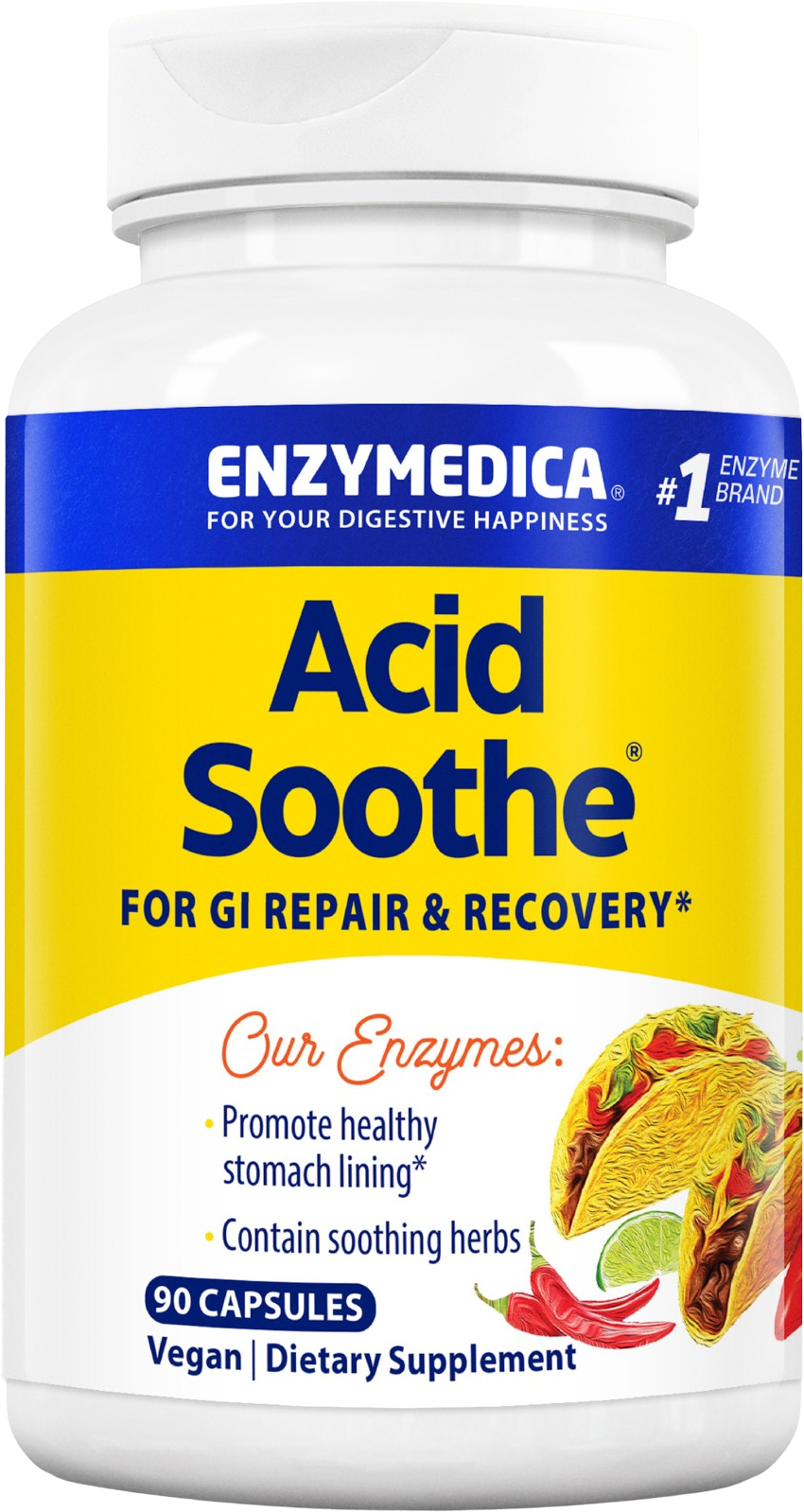 Acid Soothe® kombinuje mikroživiny s pečlivě vybranými rostlinnými látkami a enzymy. Obsažený zinek přispívá k normálnímu metabolismu mastných kyselin a k normálnímu metabolismu sacharidů. Speciální enzymy Thera-blend™ jsou navrženy tak, aby zůstaly aktivní v širokém spektru hodnot pH v trávicím traktu a umožňovaly štěpení bílkovin, tuků a sacharidů.