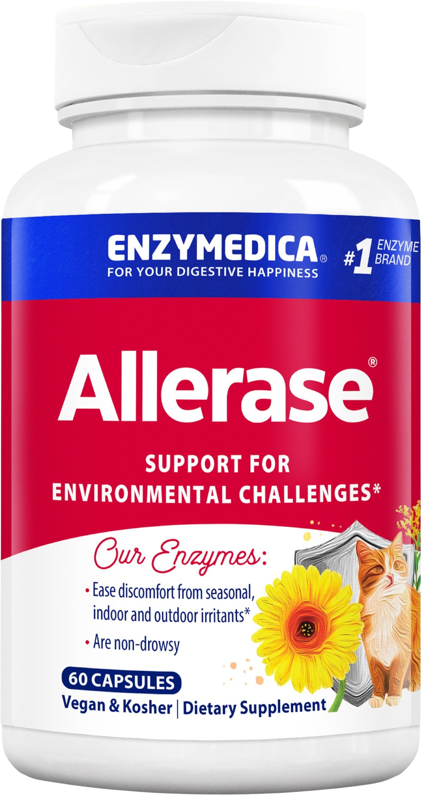 Enzymedica Allerase využívá speciální kombinaci enzymů, proteázy a amylázy, které Vás podpoří i při náročném každodenním režimu. Díky patentované technologii Thera-blend, která spojuje různé kmeny enzymů, zůstává aktivita přípravku zachována v širokém rozsahu pH hodnot lidského těla. To zajišťuje vyšší účinnost ve srovnání s běžnými enzymatickými doplňky. Kapsle jsou čistě rostlinného původu, vhodné pro vegany a neobsahují žádné geneticky modifikované organismy.