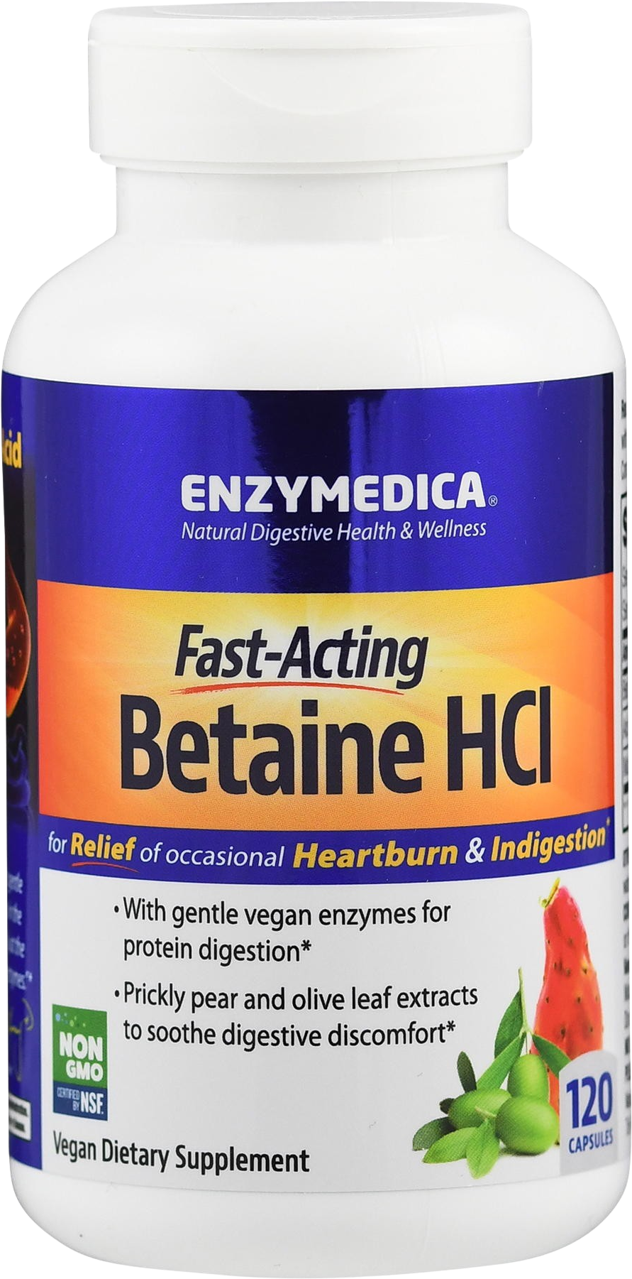 Fast-Acting Betaine HCl od společnosti Enzymedica spoléhá na čistě veganskou recepturu, která doprovází procesy v žaludku během příjmu potravy. Místo běžně používaného pepsinu ze zdrojů vepřového původu obsahuje tento produkt směs houbových proteáz. Tyto enzymy působí v kyselém prostředí a podporují rozklad bílkovin přímo během trávení.