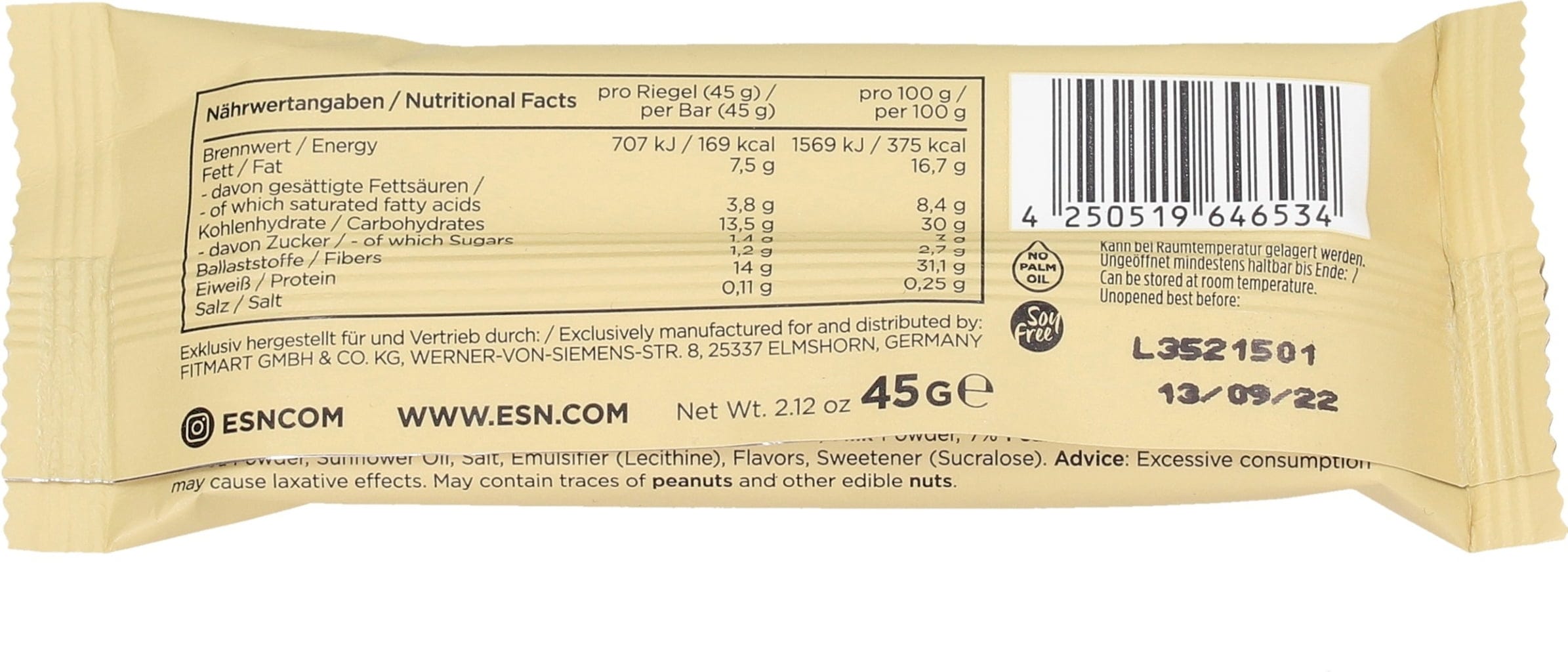 | Provozovatel potravinářského podniku: | Fitmart GmbH & Co. KG, Werner-von-Siemens-Straße 8, 25337 , Elmshorn, Německo, www.esn.com |