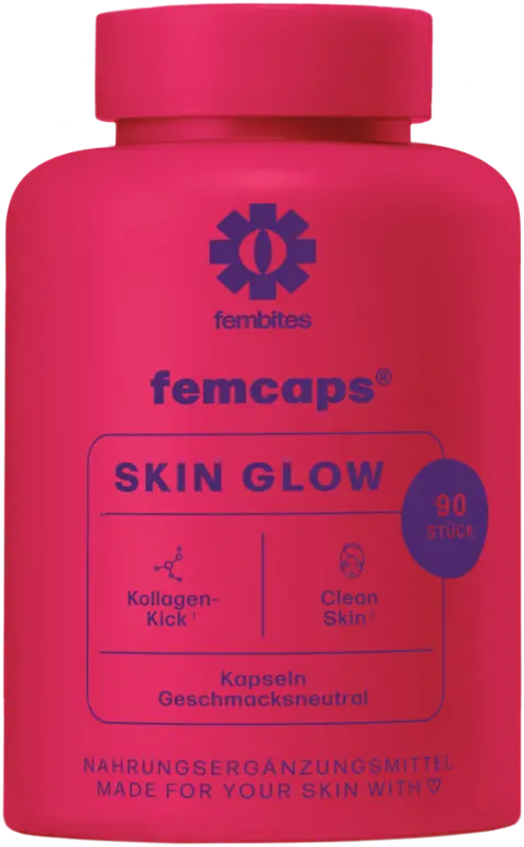 femcaps® SKIN GLOW kapsle od fembites obsahují hovězí kolagen a navíc dodávají tělu vitamín C, vitamín E, zinek a biotin. Ideálně se hodí například při problémech s nečistou pletí. Složení je bez umělých plniv a dalších přidaných látek.