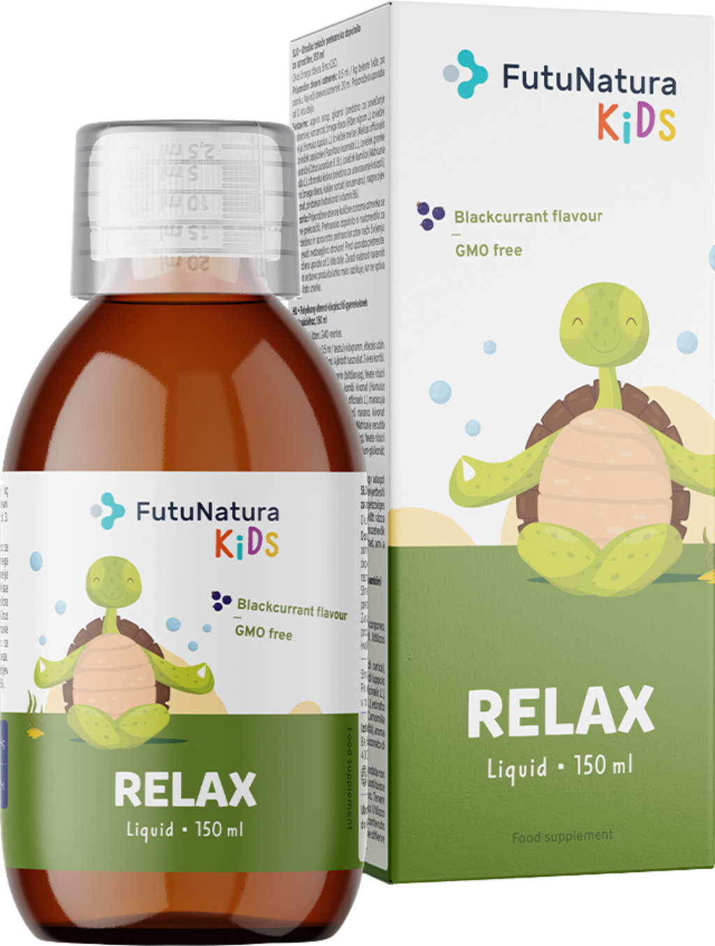 Relax Liquid od FutuNatura Kids obsahuje pět rostlinných extraktů. Patří mezi ně například extrakt z meduňky a heřmánku. Sirup je navíc obohacen o vitamín B6 a hořčík. Relax Liquid je bez geneticky modifikovaných organismů. Lze jej snadno dávkovat (v závislosti na hmotnosti dítěte).
