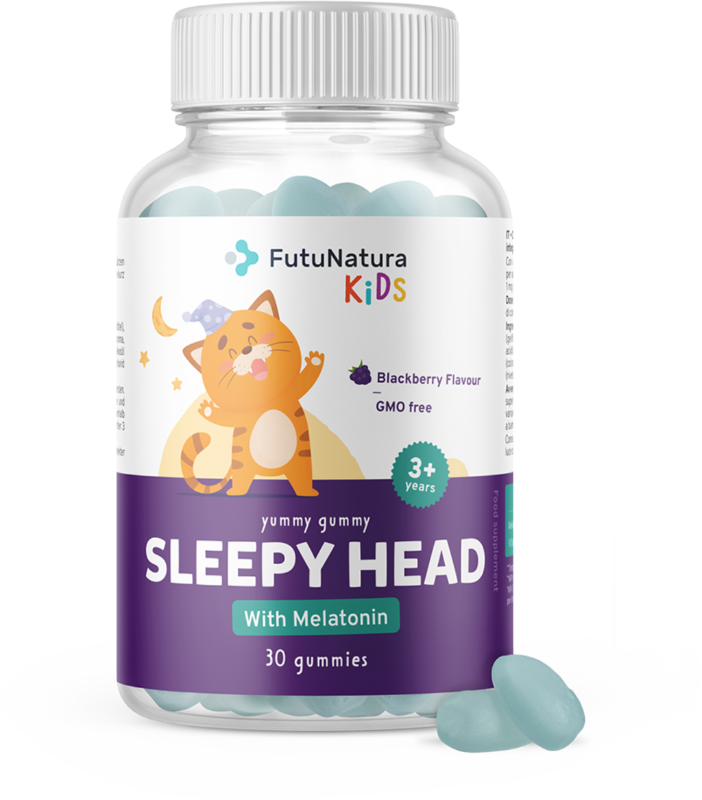 SLEEPY HEAD Gummies jsou, díky své lahodné příchuti ostružin, příjemnou alternativou ke klasickým kapslím nebo tabletám, Vaše dítě je může jednoduše rozžvýkat a sníst.