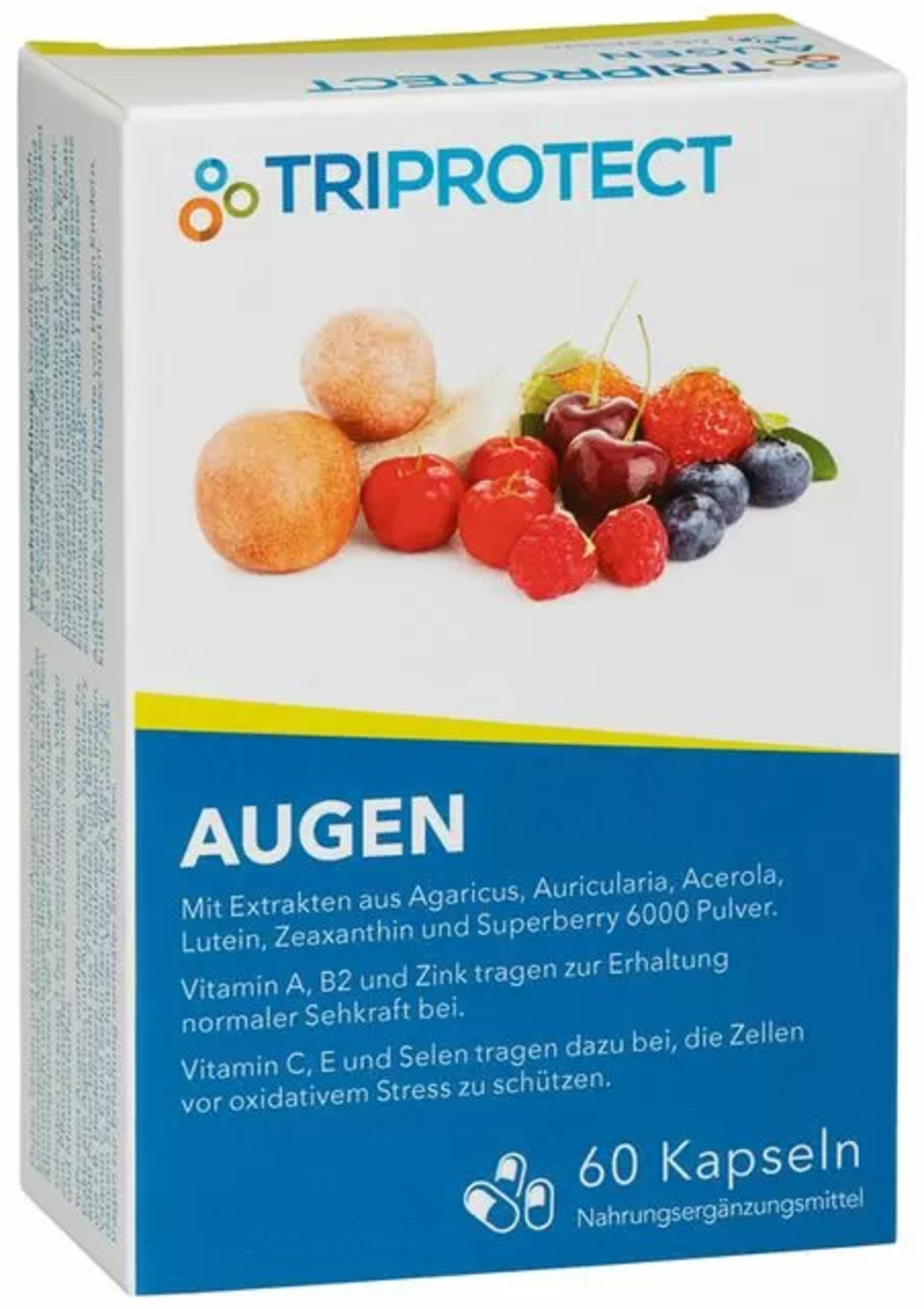 extrakt z aceroly v prášku, Hydroxypropyl methylcellulose[1], extrakt ze směsi bobulí (Superberry 6000), extrakt z Jidášova ucha (Auricularia), žampionový extrakt (Agaricus), L-askorbát vápenatý, glukonát zinečnatý, lutein, vitamín E (DL-alfa tokoferylacetát), Zeaxanthin, beta-karoten, selenan sodný, vitamín A (retinol), riboflavin, vitamín D3 (cholekalciferol)