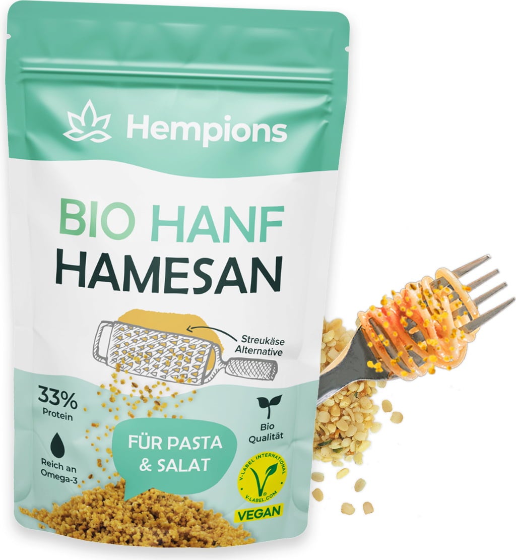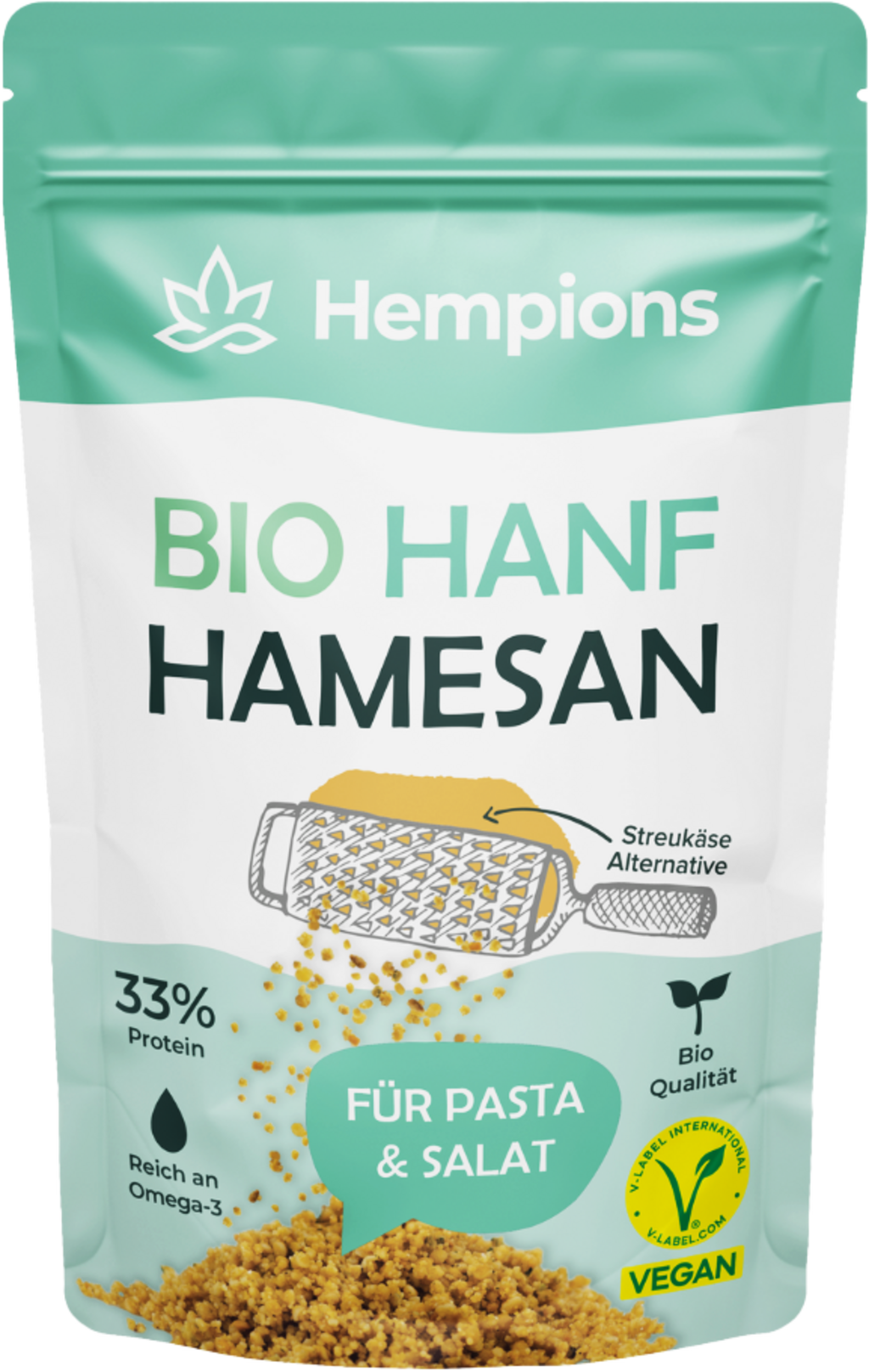 Konopný Hamesan je inovativní rostlinná alternativa strouhaného sýra vyrobená z konopných semínek. Skvěle se hodí k těstovinám, risottu, vařené zelenině, salátům a dalším pokrmům, kde byste běžně použili oblíbený italský tvrdý sýr.