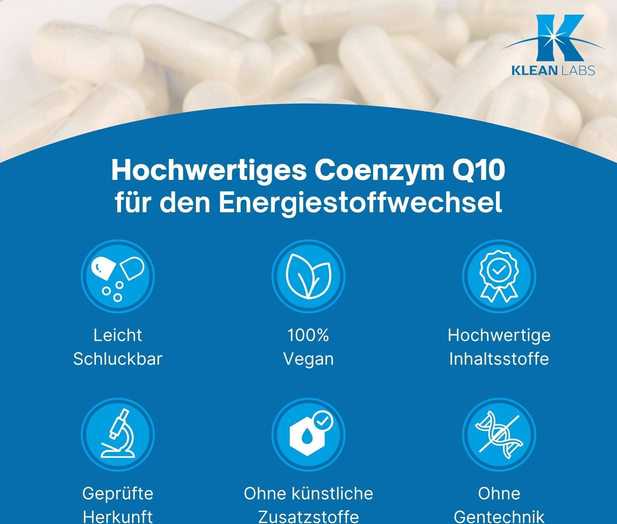 Tyto kapsle s koenzymem Q10 jako ubichinon od KLEAN LABS jsou veganské a bez genetického inženýrství. Každá kapsle Vám poskytuje 100 mg koenzymu Q10.