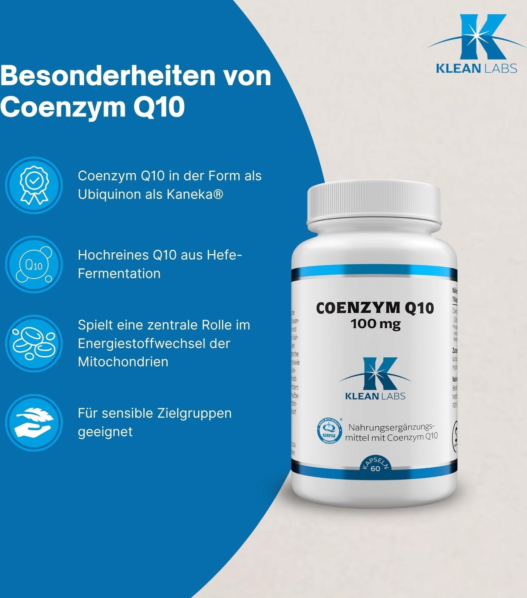 KLEAN LABS Koenzym Q10, 100 mg, 60 kapslí