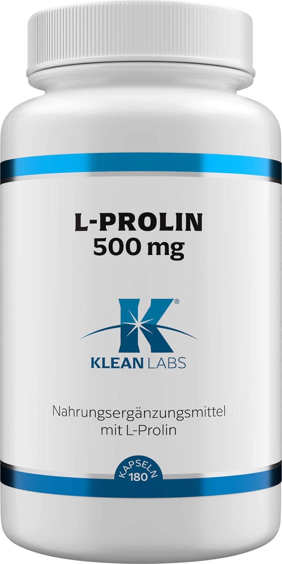L-Prolin 500 mg od KLEAN LABS obsahuje 500 mg semi-esenciální aminokyseliny v jedné kapsli.