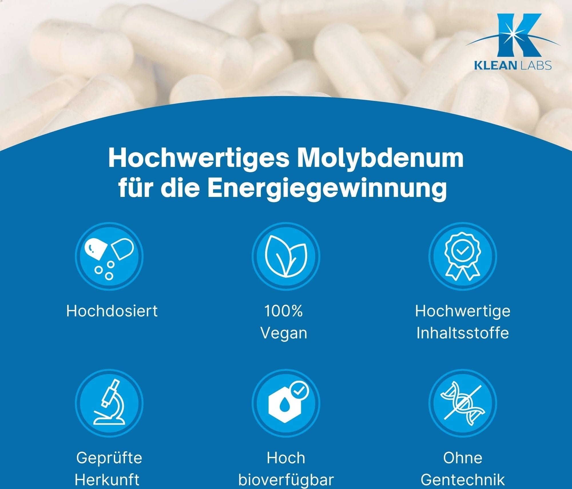 Tento doplněk značky KLEAN LABS obsahuje 500 µg molybdenu v jedné kapsli. Produkt je 100% veganský a neobsahuje GMO.