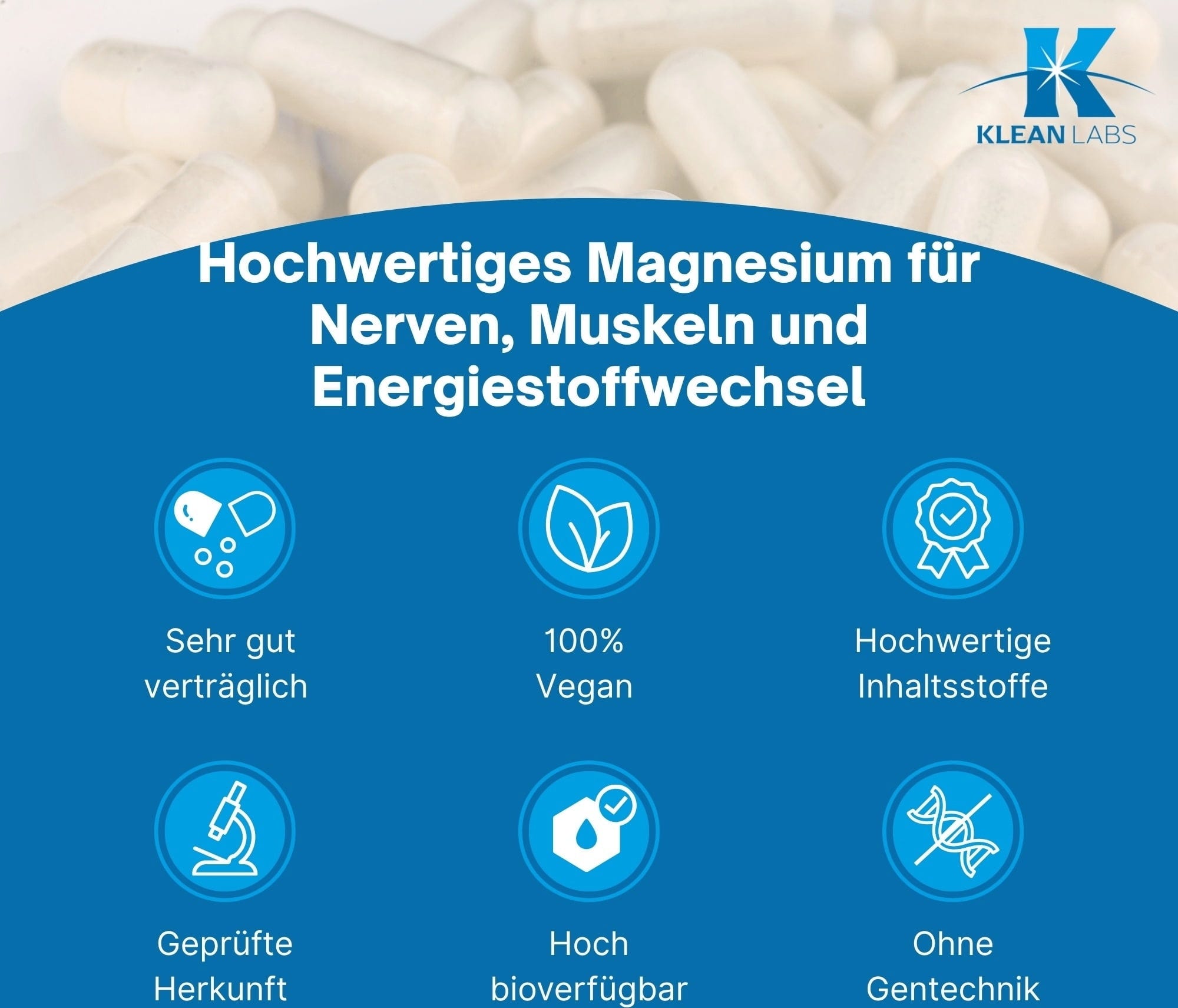 Veganské kapsle značky KLEAN LABS obsahují 100 mg hořčíku ve formě taurátu v jedné kapsli. Doplněk stravy je bez GMO a lepku.