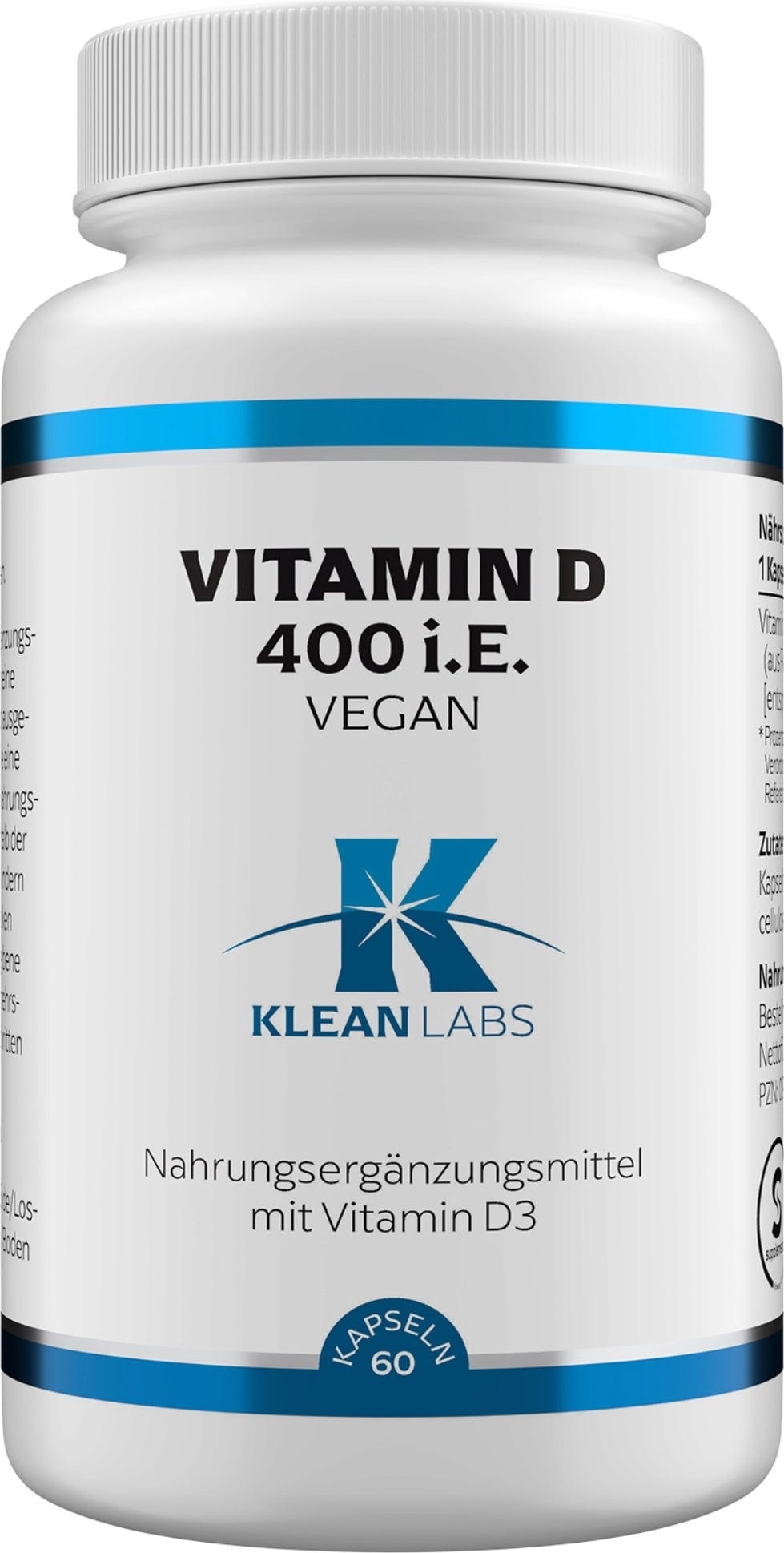 KLEAN LABS používá 400 IU cholekalciferolu z extraktu lišejníků pro svou veganskou formu vitamínu D. Veganské kapsle jsou zapouzdřeny v rostlinném obalu kapsle a jsou ideální pro rostlinnou a bezmasou stravu.