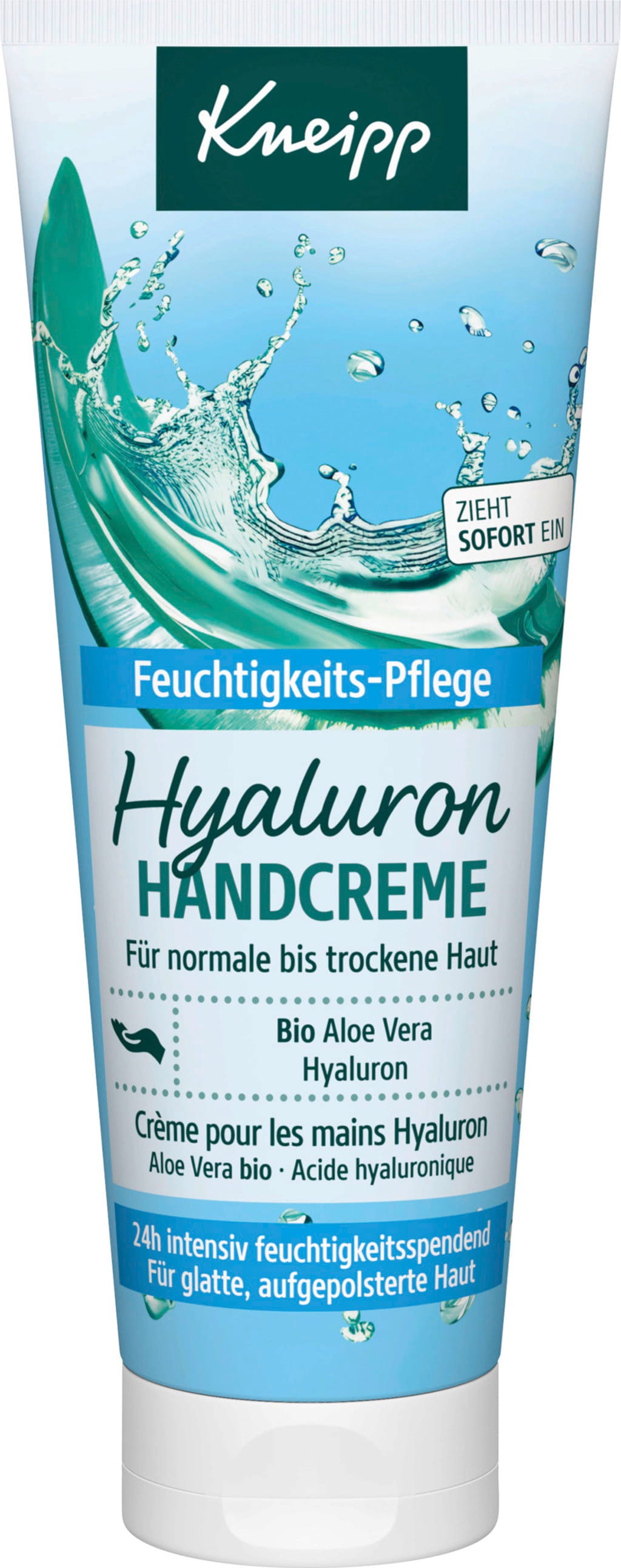 Kneipp Hyaluronový krém na ruce dodává Vašim rukám hydrataci a podporuje příjemně hebký pocit pokožky. Kombinuje kyselinu hyaluronovou s bio aloe vera a panthenolem do Hydro-Boost komplexu, který poskytuje dlouhotrvající hydrataci. Bohaté složení se rychle vstřebává a zajišťuje vláčnou, na pohled hladší pokožku. Díky svěží, pečující vůni a veganskému složení bez mikroplastů je ideální pro Vaši každodenní péči o ruce.