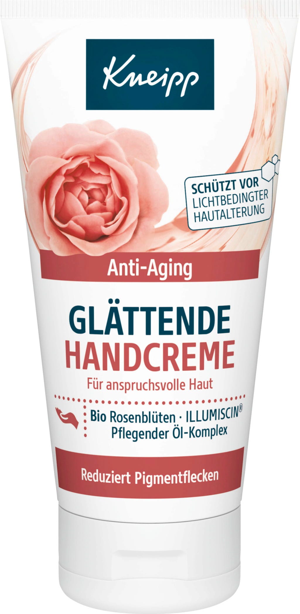 Vyhlazující krém na ruce od Kneipp poskytuje bohatou péči s anti-age efektem pro Vaše ruce. Jeho textura s bio extraktem z růžových květů a rostlinným olejovým komplexem z bambuckého, arganového a jojobového oleje dodává pokožce vlhkost a intenzivně ji hýčká. Speciální komplex ILLUMISCIN® je navíc navržen tak, aby optimálně pečoval o pokožku s viditelnými pigmentovými skvrnami. Pro příjemně hebký pocit pokožky bez mastného filmu.