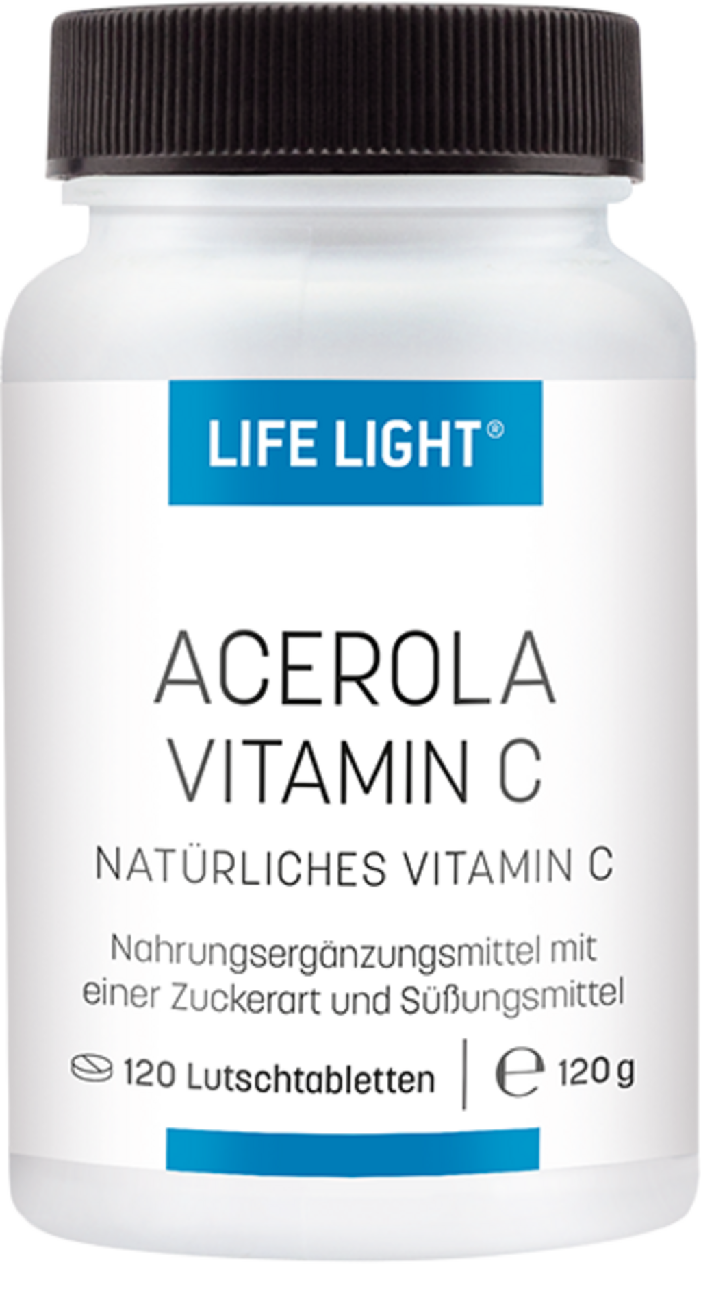 Značka Life Light nabízí veganské rostlinné pastilky s vitamínem C z třešní acerola zralých na slunci, slazené stevioylglykosidy z rostliny stévie. Vhodné zejména pro děti.