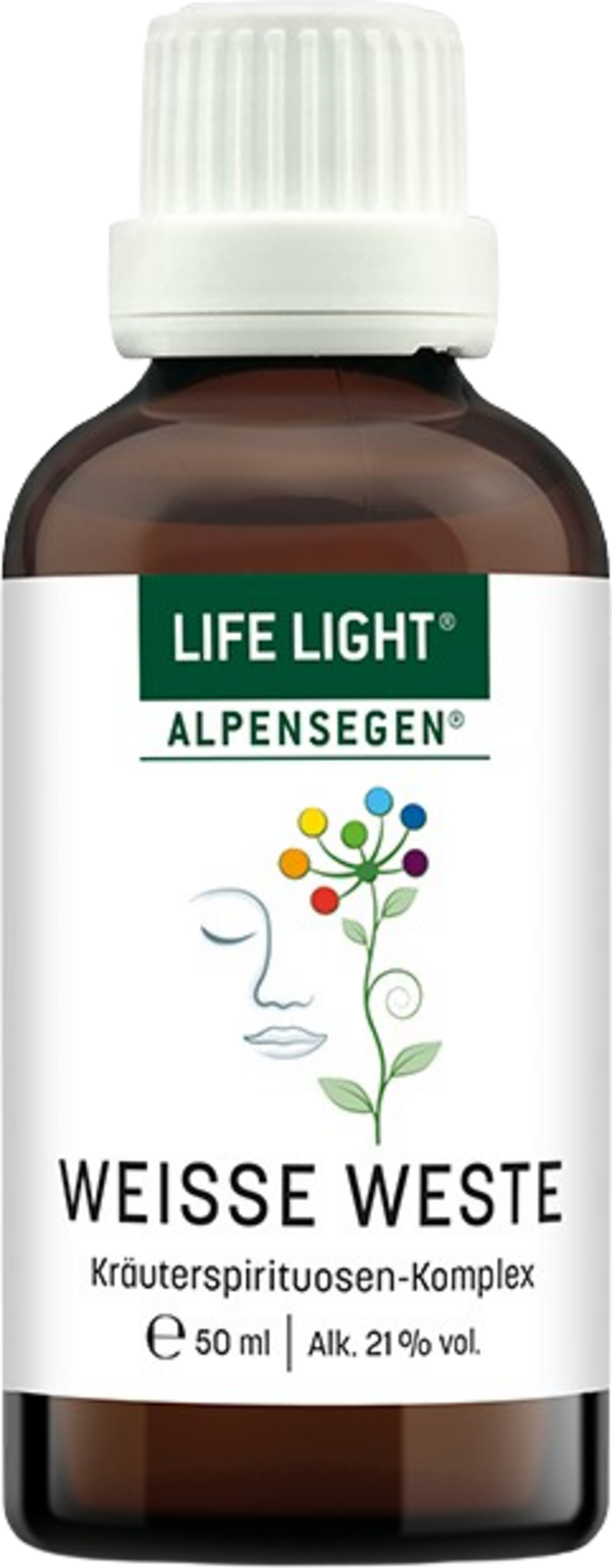 Alpensegen bílá vesta představuje vysoce kvalitní bylinný destilát podle Paracelsa se synergickým komplexem bylinných silic.