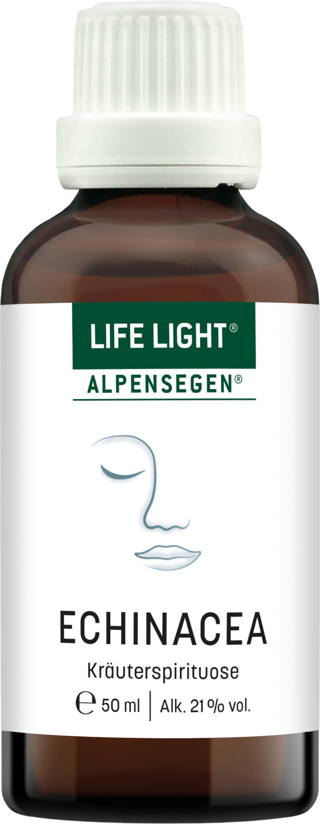 Bylinný destilát Alpensegen Echinacea se vyrábí v Rakousku z Echinacea purpurea (= Třapatka nachová). Obsah alkoholu je min. 21 %.