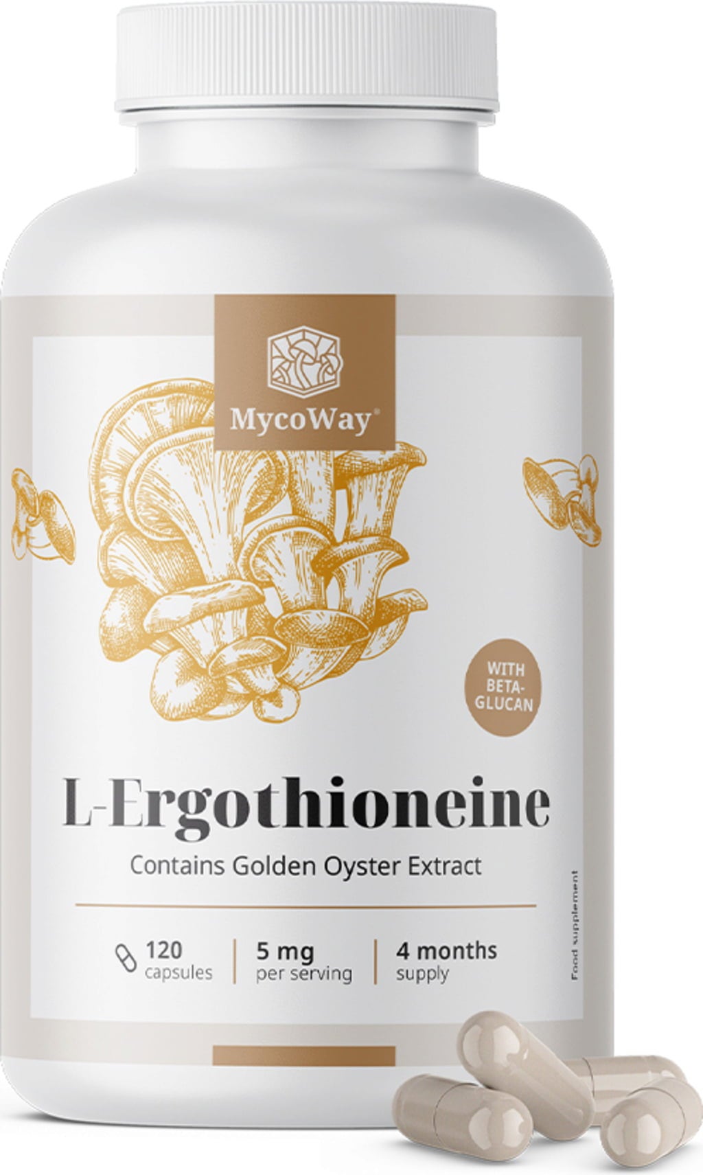 Tento produkt kombinuje vzácnou aminokyselinu L-ergothionein s kvalitním extraktem z hlívy citronové (Pleurotus citrinopileatus). L-ergothionein je jedinečná přírodní sloučenina, kterou tělo vstřebává pomocí specifických transportních bílkovin. Protože si ji organismus nedokáže sám vytvořit, je nutné ji přijímat potravou nebo formou doplňků stravy.
