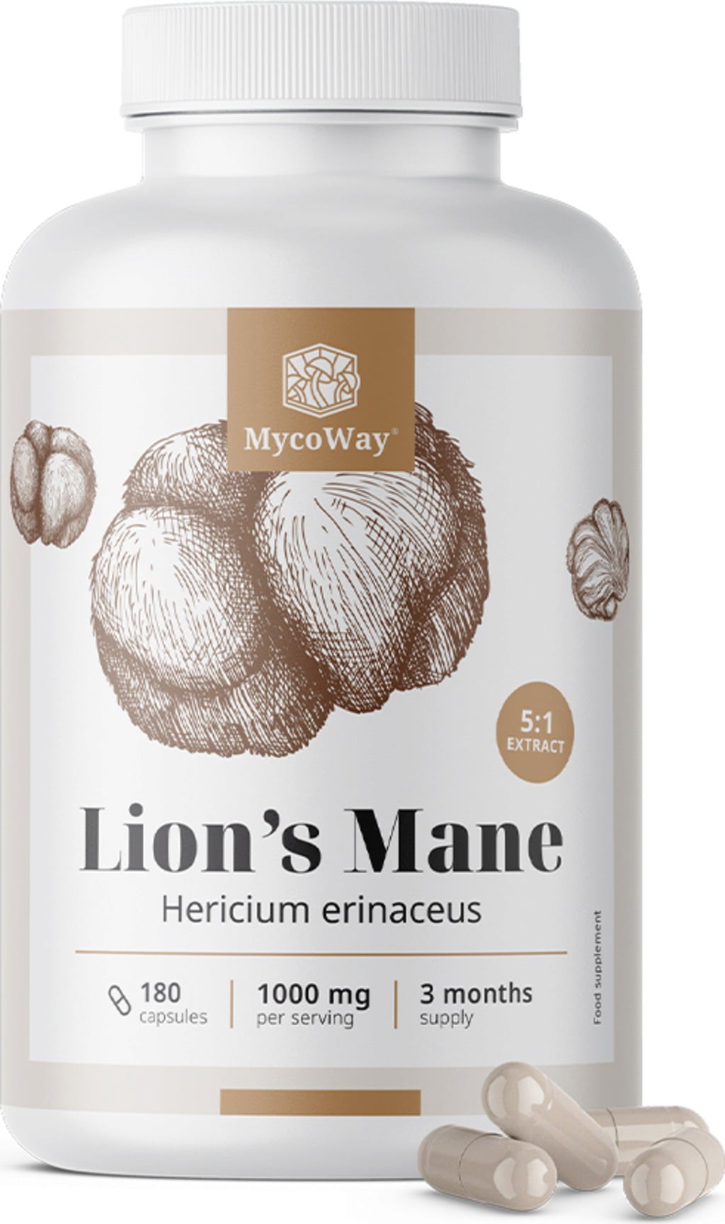 MycoWay Lion's Mane kapsle - Extrakt 5:1, 180 kapslí