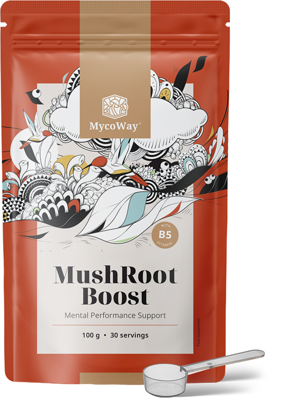 Tento nápojový prášek nabízí promyšlenou kombinaci tří ceněných houbových extraktů a vybraných rostlinných složek, jako je maca, yerba maté, rozchodnice růžová a ženšen. Byl vyvinut jako alternativa ke klasické kávě a představuje spolehlivého společníka pro celý den. Obsahovaný vitamín B5 podporuje duševní výkonnost a přispívá ke snížení únavy a vyčerpání.