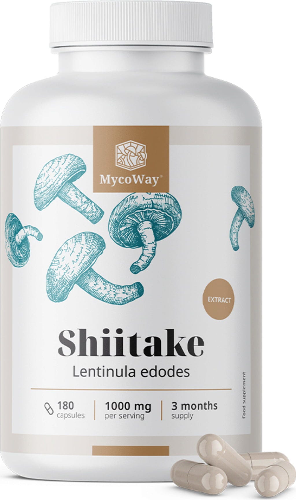 Kapsle od MycoWay obsahují koncentrovaný extrakt z houby Shiitake. Doporučená denní dávka obsahuje 1000 mg extraktu, standardizovaného na přibližně 30 % polysacharidů. Díky kompaktní kapslové formě lze produkt snadno začlenit do Vaší každodenní rutiny a dobře se hodí k pestrému životnímu stylu.