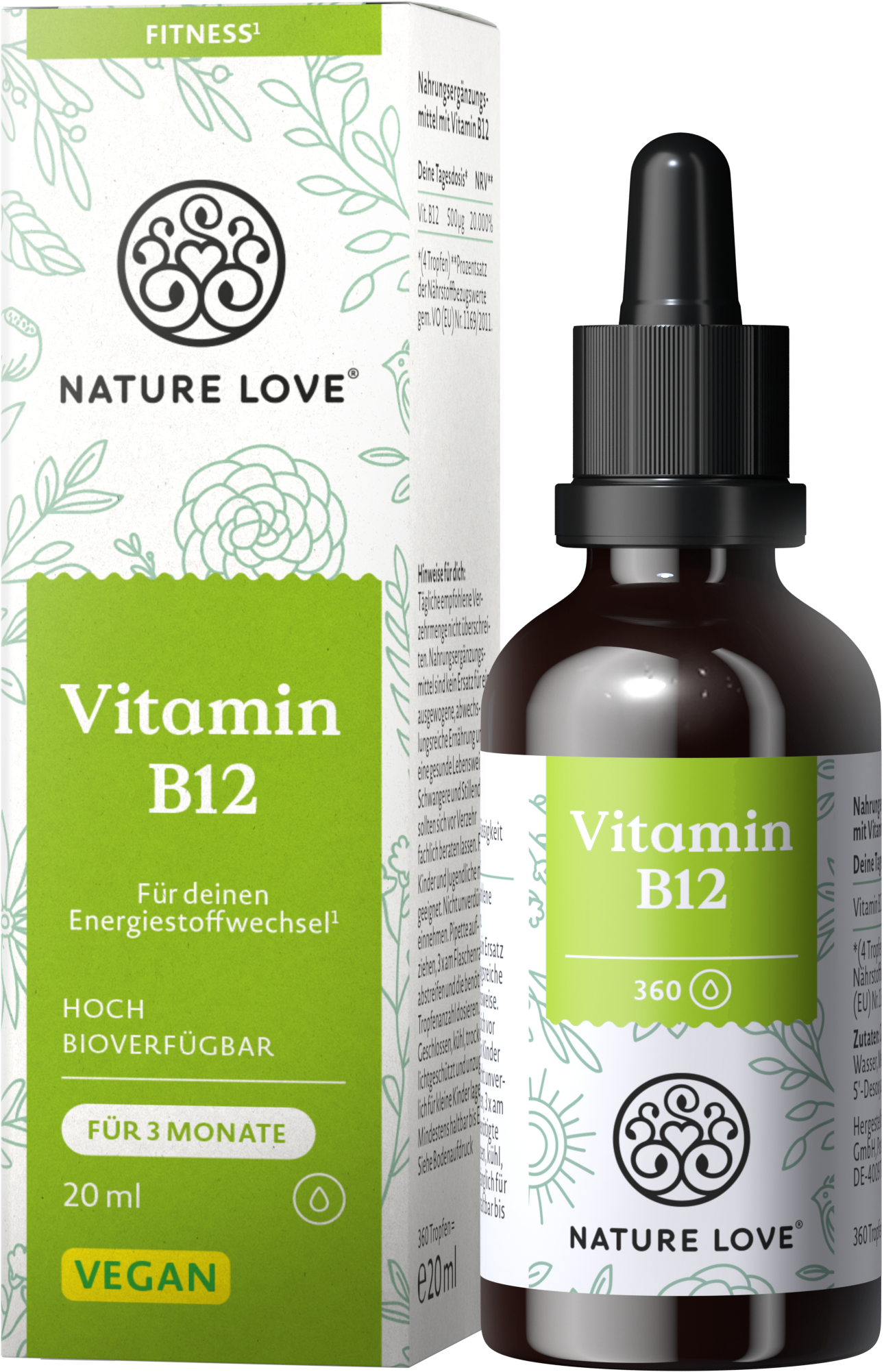 Tyto kapky od Nature Love obsahují kvalitní vitamín B12 ve dvou bioaktivních formách – methylkobalamin a adenosylkobalamin. Vitamín B12 se podílí na celé řadě tělesných procesů. V přirozené podobě má vitamín B12 červenou barvu, proto mají i tyto kapky sytě červený odstín – bez přidaných barviv. Kapky neobsahují alkohol a jsou 100% veganské.