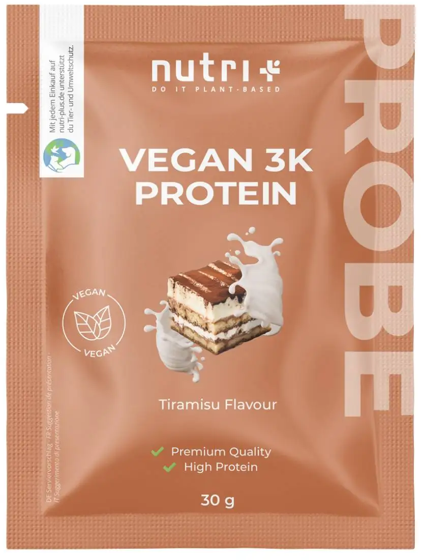 nutri + Vegan 3K proteinový prášek – zkušební balení, Tiramisu (30 g)
