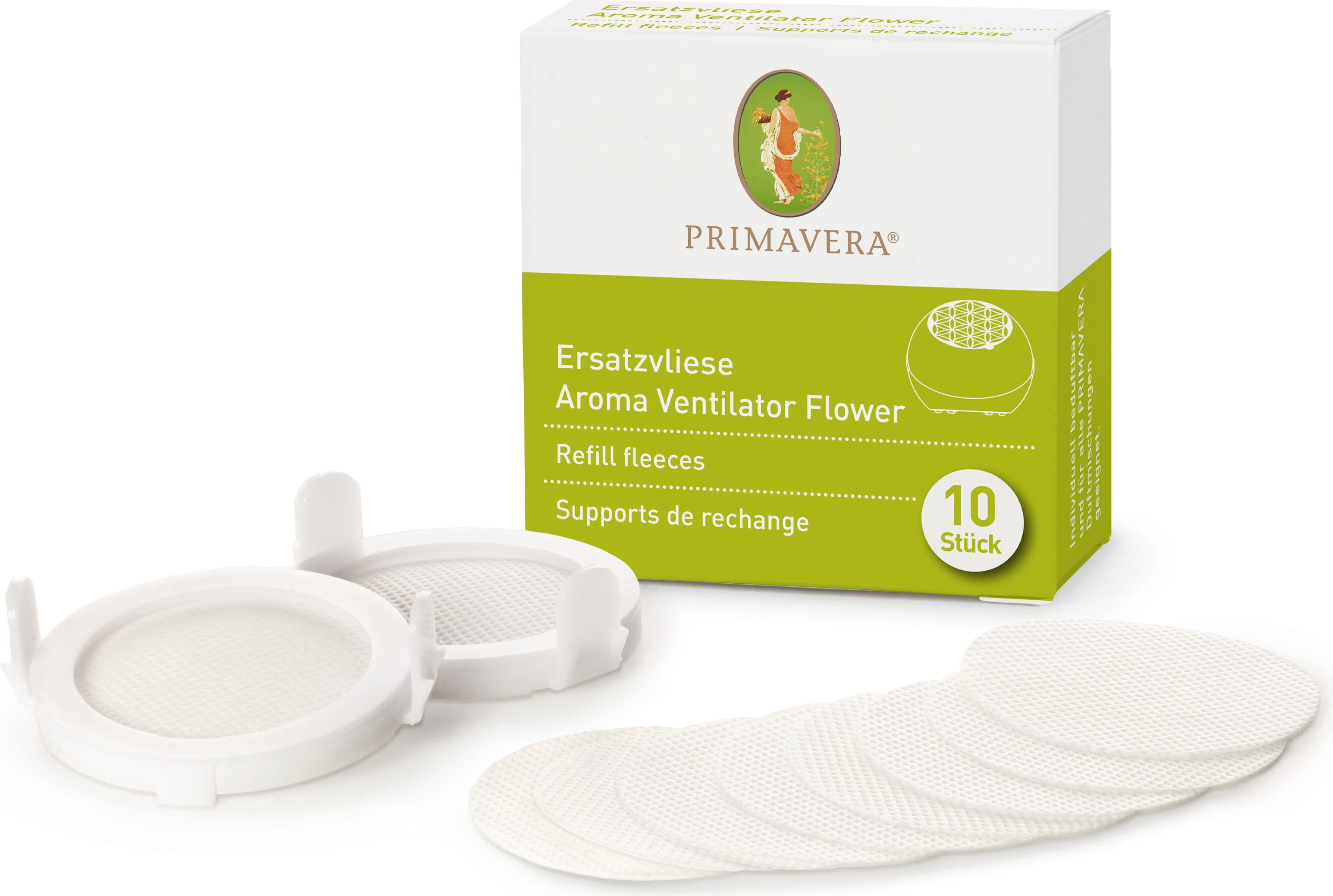 Praktická náhradní rouna jsou vhodná pro Flower aroma ventilátor značky PRIMAVERA a lze je rychle a snadno vyměnit. Každé rouno lze použít vícekrát, ale je vhodné jej ovonět vždy stejným aromatem. Tímto způsobem je optimálně zachována síla éterických olejů a směsí.