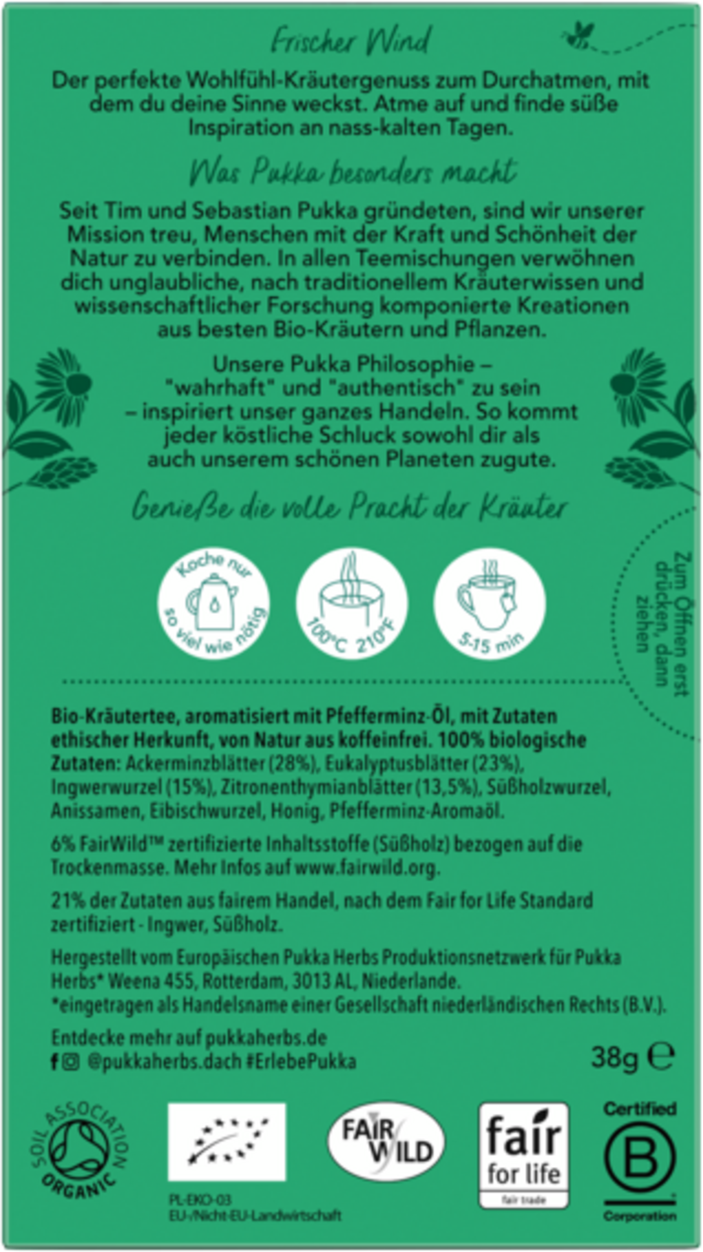 | Výrobce: | Lipton Teas and Infusions Germany GmbH, Axel-Springer-Platz 3, c/o WeWork, 20355, Hamburg, Německo, kontakt@pukkaherbs.de |