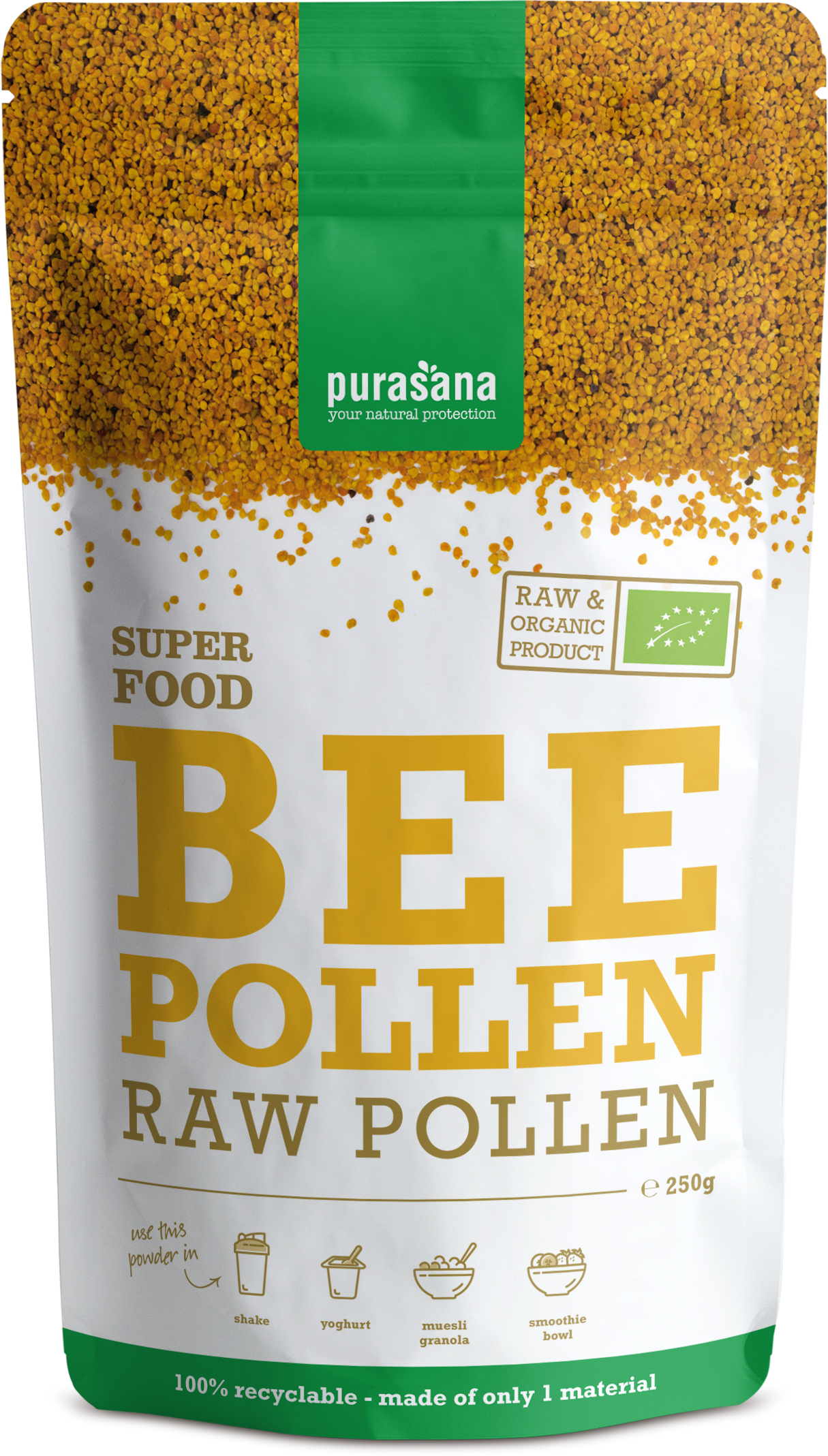 Tento granulát pochází z pylu nasbíraného španělskými včelami. U vchodu do úlu se nesbírá více než 50 % pylu. Tím je zajištěno, že včelí populace zůstane zdravá a chráněná.