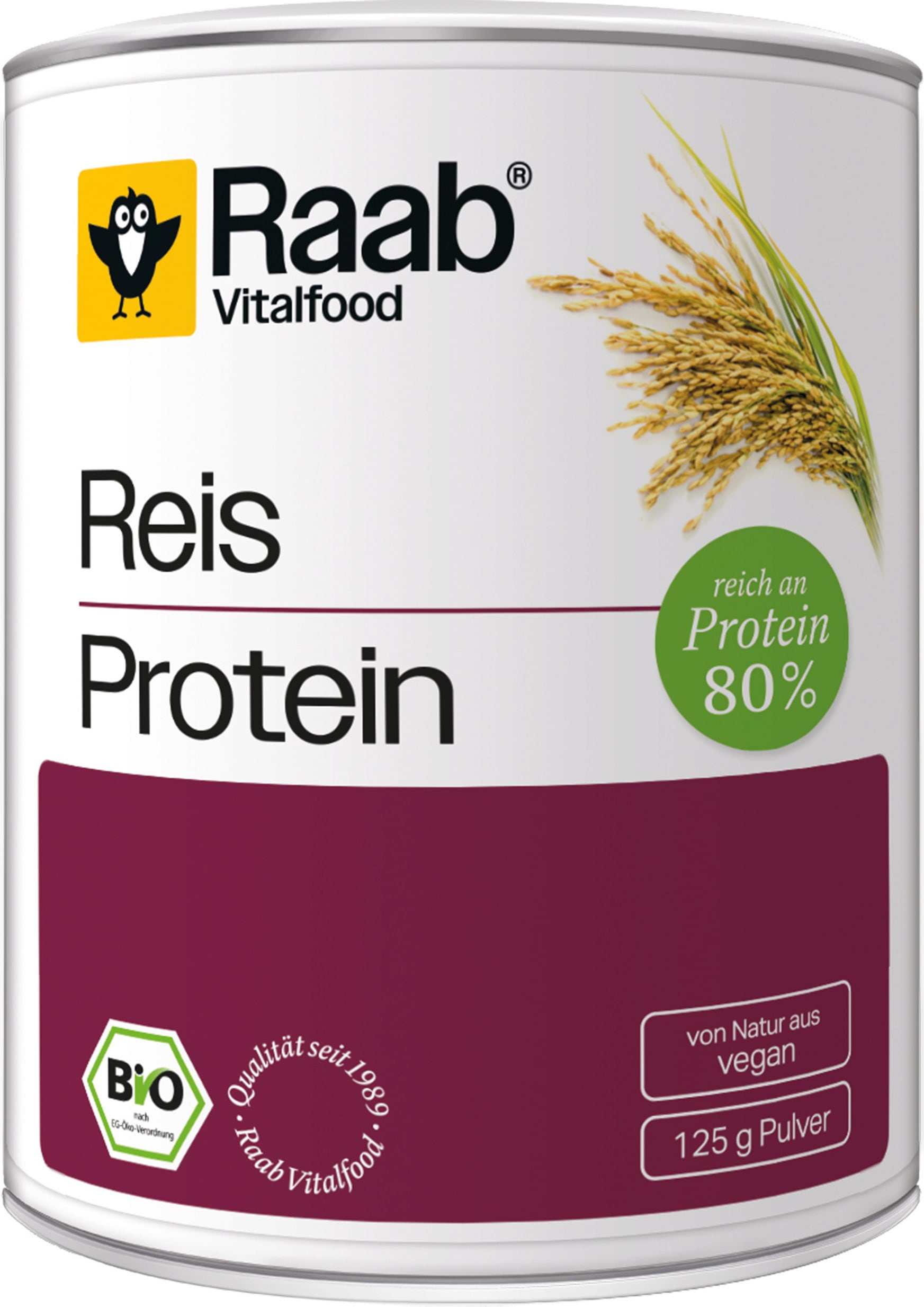 Bio rýžový proteinový prášek značky Raab Vitalfood obsahuje 80 % bílkovin a všech 8 esenciálních aminokyselin. Díky své neutrální chuti se může míchat s mnoha potravinami a nápoji.
