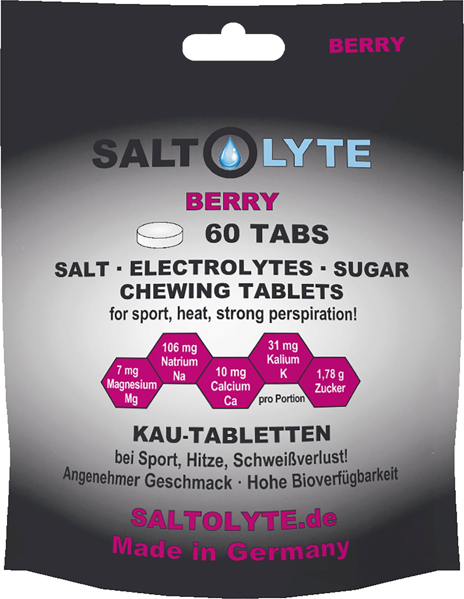 Každá porce obsahuje sodík, draslík, vápník a hořčík ve vyváženém poměru. Díky formě žvýkacích tablet dochází k rychlému vstřebání bez nutnosti zapíjení. Příjemná ovocná příchuť zajišťuje snadné užívání – bez nepříjemné slané chuti.