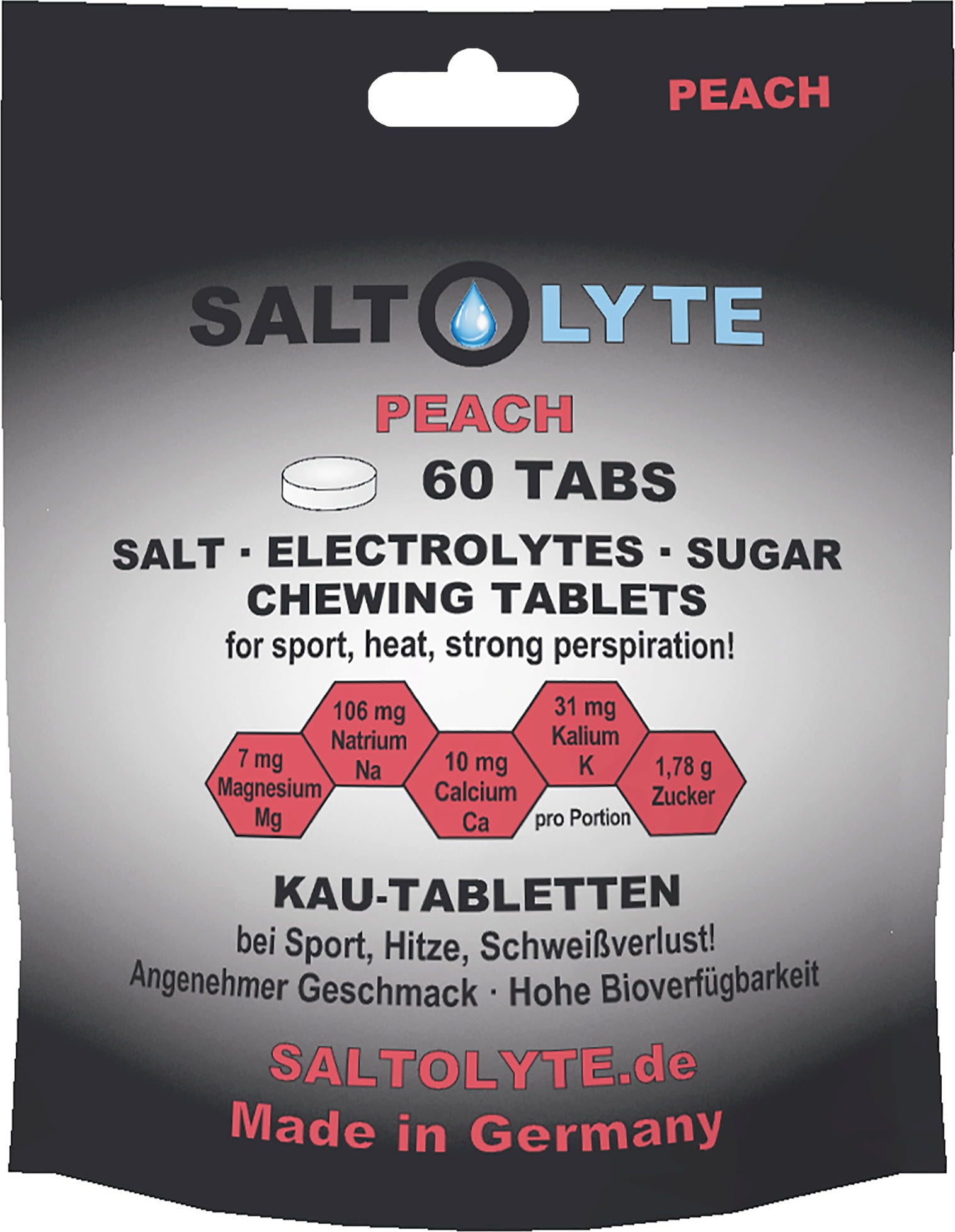 SALTOLYTE Žvýkací tablety se solí a elektrolyty, 60 ks, Peach (60 žvýkacích tablet)