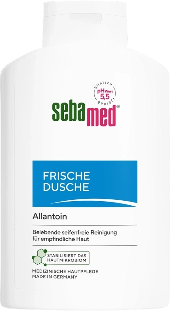 Osvěžující sprchový gel od sebamed® dokáže díky hodnotě pH 5,5 podpořit ochrannou bariéru pokožky. Jemné osvěžující složení obohacené o alantoin a kyselinu mléčnou šetrně čistí a má hydratační účinky. Sprchový gel je vhodný pro každodenní použití na citlivou a jemnou pokožku.