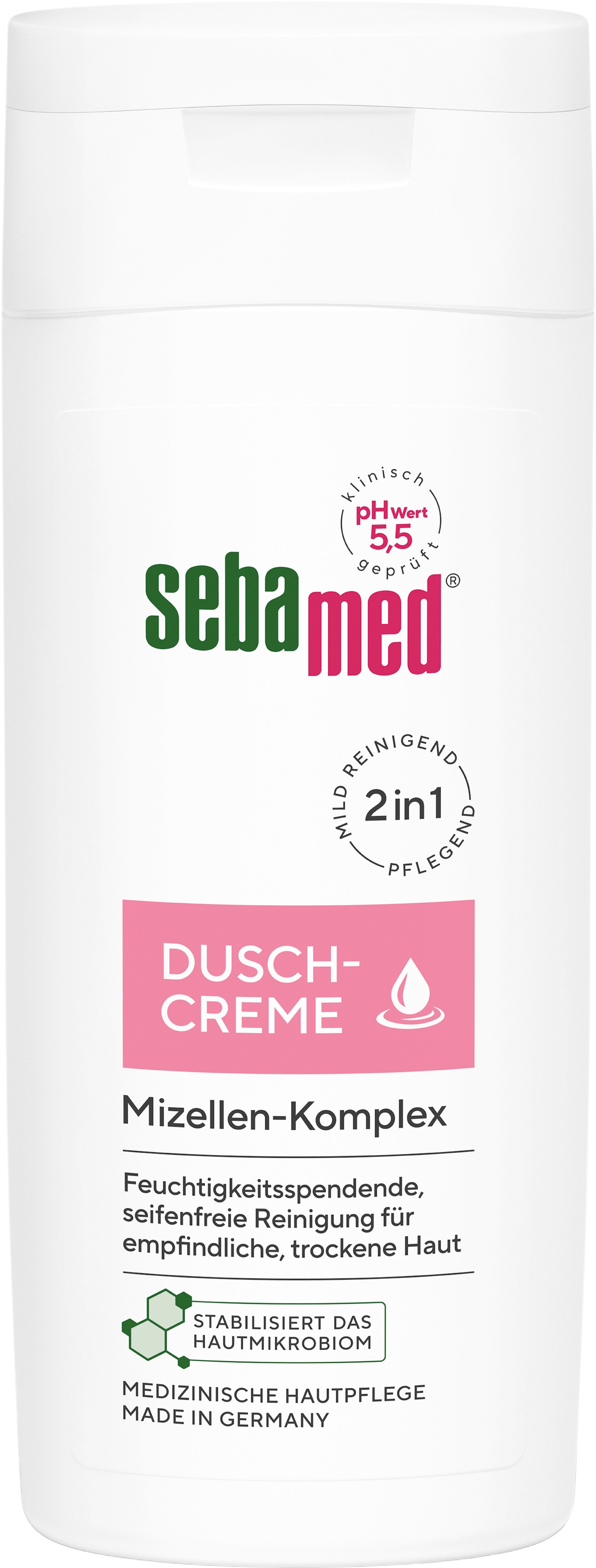 Sprchový krém značky sebamed® čistí a pečuje o citlivou a suchou pokožku. Obsažený micelární komplex jemně čistí, zatímco pH 5,5 dokáže zvýšit odolnost pokožky proti škodlivým vlivům prostředí, vysušení a patogenům. Obsažené rostlinné lipidy, nenasycené mastné kyseliny a aktivní biologická ochrana s přírodním chitinem navíc dokáží dlouhodobě udržet vlhkost a zajistit tak jemnou a ošetřenou pokožku.