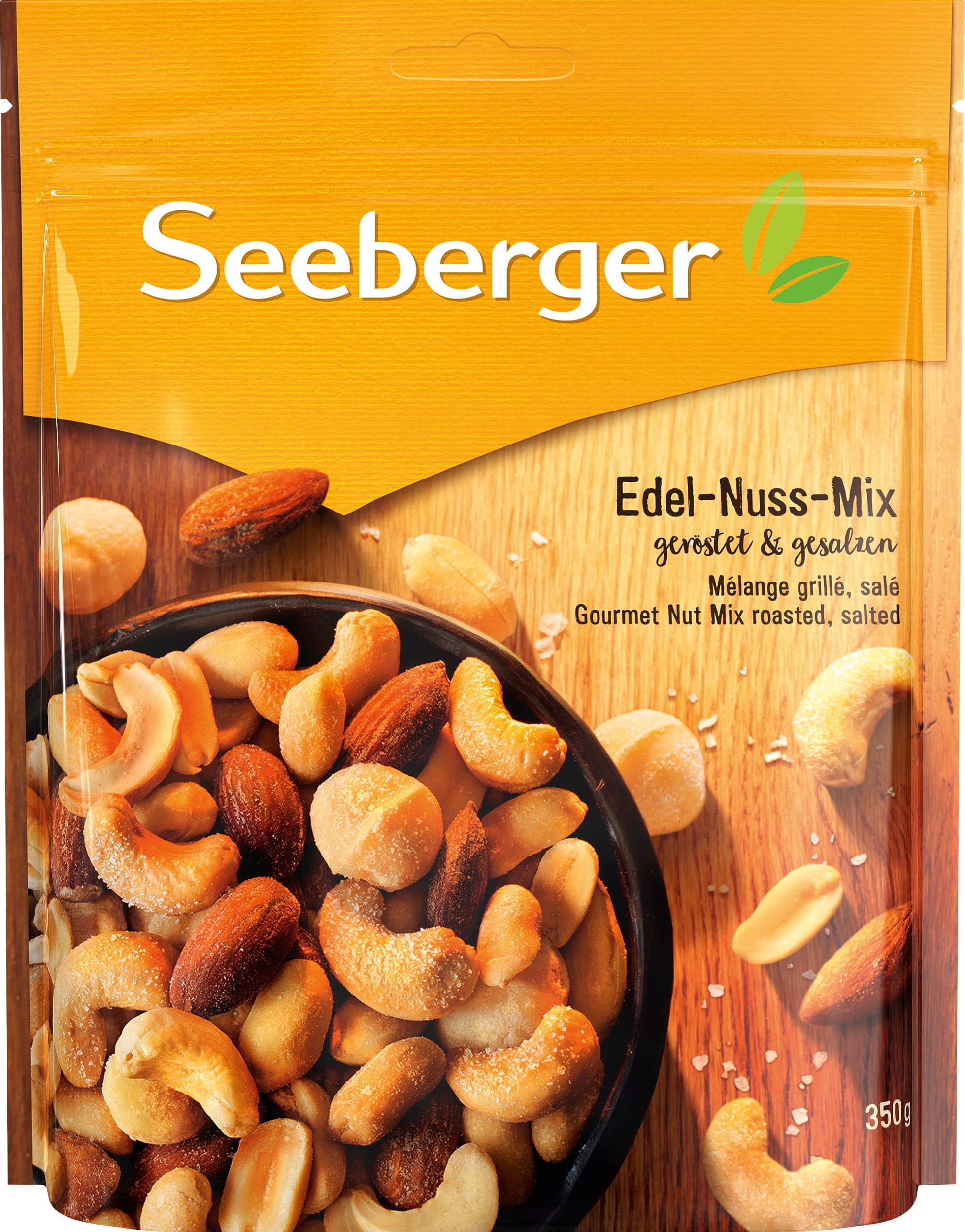 Prémiová směs ořechů Seeberger Vám nabízí čistou rozmanitost! Pražené arašídy, kešu oříšky a makadamové ořechy, zjemněné špetkou soli, Vám poskytnou lahodnou svačinu!