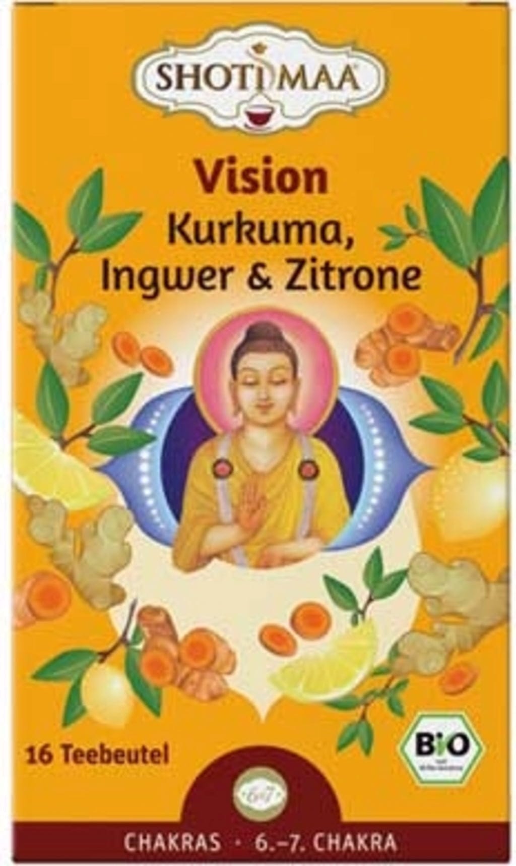 Shoti Maa Bio čaj vize - kurkuma, zázvor a citron, 16 čajových sáčků (32 g)